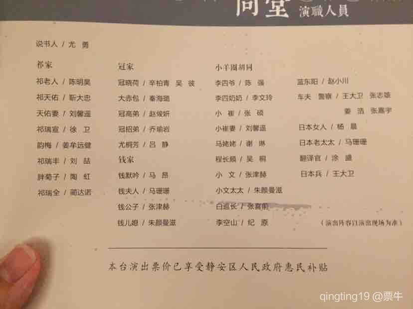 Lv4「随便写点,不写感觉太对不起票价」要把四世同堂压缩到3个多小时的话剧里是非常难的,如果从故事完整度来说,这戏改编的够可以了,祁天佑小文夫妇妞儿去世的情节还是赚足了泪点。演员中辛柏青演的最好,形体台词角色控制,非常符合我心目中的冠晓荷,如果不是他,这出戏失色大半(秦海璐的大赤包和陶虹的胖菊子,我个人觉得还是演的中规中矩,大概因为角色本来就比较各色比较脸谱化)。尤勇在上海场继续客串说书人挺让人意外的,声音很惊喜,台词确实好,上海话是个彩蛋。其实最大的问题是演员北京话水平太参差了,这是一出老北京戏哎,儿化音出现错误或者完全不是北京音有点太不应该了,如果不是全程鸽哨和大鼓书作为背景音,很难有和茶馆抗衡的老北京体验感。(人艺正好另一个极端,是演什么都用北京话,虽然是特色,但是看外国剧目还是国话和上话的风格舒服)。这出戏当年是用来抗衡人艺茶馆和窝头会馆的大戏,也是国话必看的标志性剧目,最初的演员阵容十分强大:雷恪生演祁老人,黄磊演瑞宣,李乃文演瑞丰,辛柏青演冠晓荷,国话话剧三个当家花旦朱媛媛、秦海璐、小陶虹包了剧中三个主要女性角色瑞宣妻、大赤包、胖菊子(这三个在国话的话剧中都是独立女主的分量,合体太难得了,据说是因为国话受了人艺排窝头会馆凑齐了宋丹丹徐帆龚丽君的刺激),李文玲老师演的李四奶奶,邢佳栋演的小崔,首演确实把四世同堂立的很高,但也因此把最初的版本定义为了明星版,给后来的演出带来了太多局限,明星效应带来的褒奖有时候盖过了话剧本身的质量,个人觉得同样是“明星聚集”的窝头会馆在故事性和人物节奏上还是更胜一筹(不拿茶馆比,毕竟茶馆是现成的完整的经历了三代人加工的剧本,这么比有点欺负人,还是窝头会馆的创作环境比较接近于四世同堂吧) 不过……唔,追星的确实不少,秦海璐陶虹尤勇都有花篮,辛柏青这种好演员其实也值得作为角儿捧!siriusldy-EZBfPLv42018-05-183回复17赞
