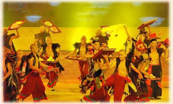 “跳菜舞”独具特色,在宴请客人时 舞蹈着上菜,是宴宾时的最高礼仪,集舞蹈、 音乐、杂技与饮食为一体。