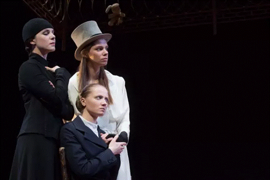 在视觉上,图米纳斯的《三姐妹》与今天的观众刻意保持距离,演员们身着19世纪风格的服装。舞台上仅是简单的平台,雕花的围栏,几把椅子,却让导演发挥出他惊人的创造力和想象力,诸多关于流动马戏团和对节庆期待的童年回忆穿插于剧中,将观众带回自己的童年。还有荒诞的、意想不到的、风格鲜明的布景。《三姐妹》充满了戏剧的创意才华和摇摆不定的青春,它活灵活现、影响深远,凝结着一种轻盈与厚重并奏、笑与泪交挥的戏剧质感。