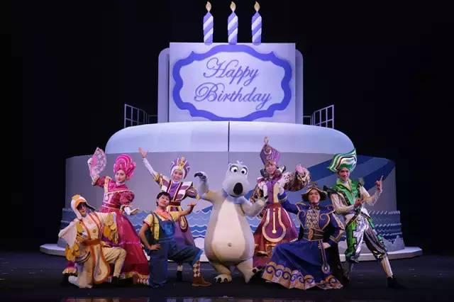 搭配生日的主题,银幕一拉开整个舞台被包装成精美的大蛋糕,随着场景变换,旋转展开式舞台千变万化舞台场景将在观众面前真实呈现!呈现舞美多元样貌,打破传统的暗场进行换景的常规,配合灯光及经验丰富的演员将幻景过程融合到剧中,让大朋友小朋友体验到舞美的魔法!
