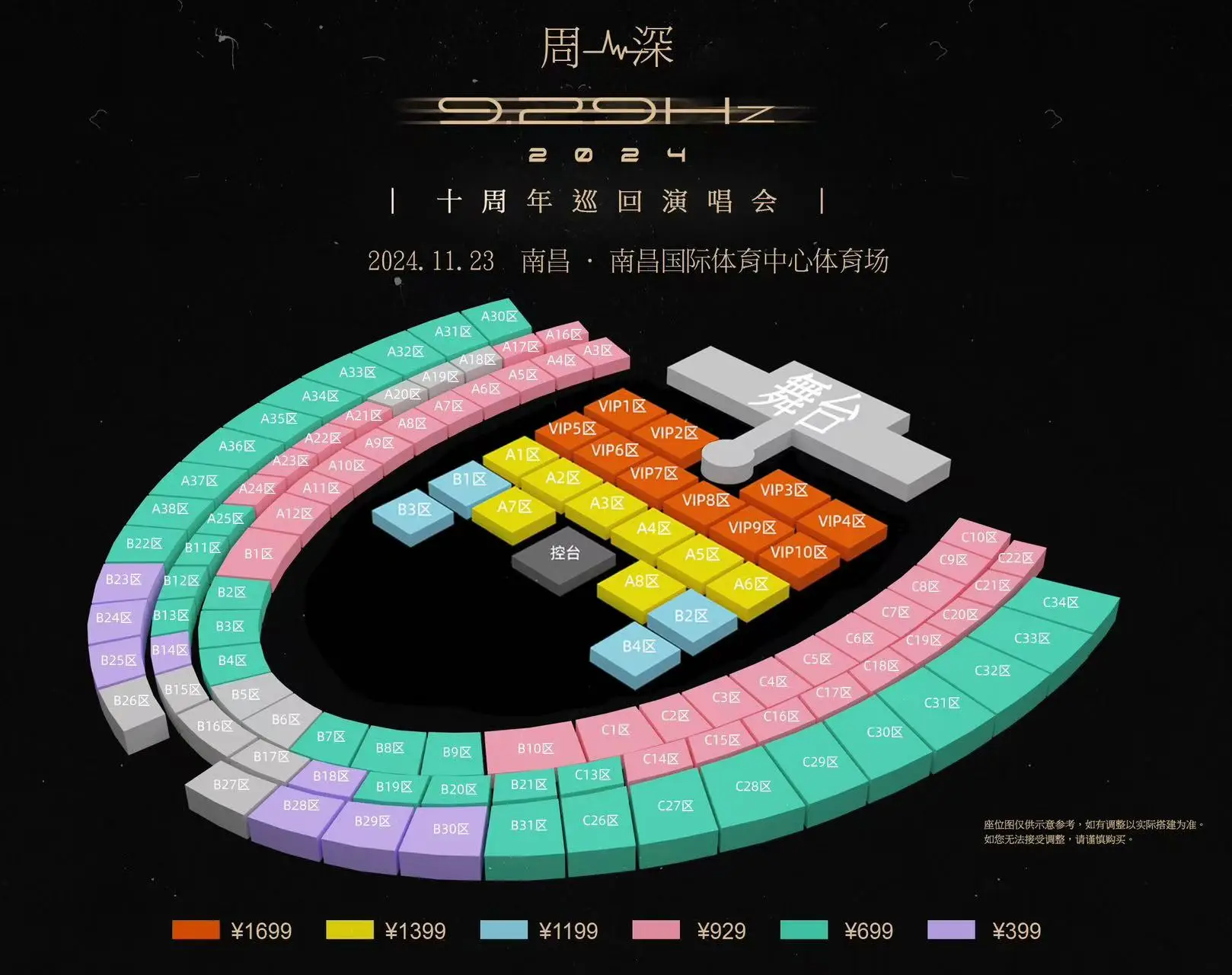 | 服务费说明 | 为了给您提供便利的在线购票服务,票牛为此投入大量的平台技术支持、运营维护支持,并联合平台入驻商家、第三方在线支付服务商、第三方合作商等合作方为您提供服务,基于前述平台成本及合作方服务费用,票牛向您收取不超过票款5%的平台服务费(最高不超过400元)。 票牛收取的平台服务费,主要可能包括如下内容:1.票牛的线上平台和软件系统开发维护成本。2.支付宝、微信等第三方支付服务商收取的支付手续费用。3.物流公司收取的票品寄送费用(如纸质票)。4.客户服务成本以及短信、电话等通道费用。5.为用户提供购票保障服务对应的运营与管理成本。6.其它为完成用户订单必须的相关服务成本、人员成本等。 | 座位类型 | 请按门票对应座位,有序对号入座 |