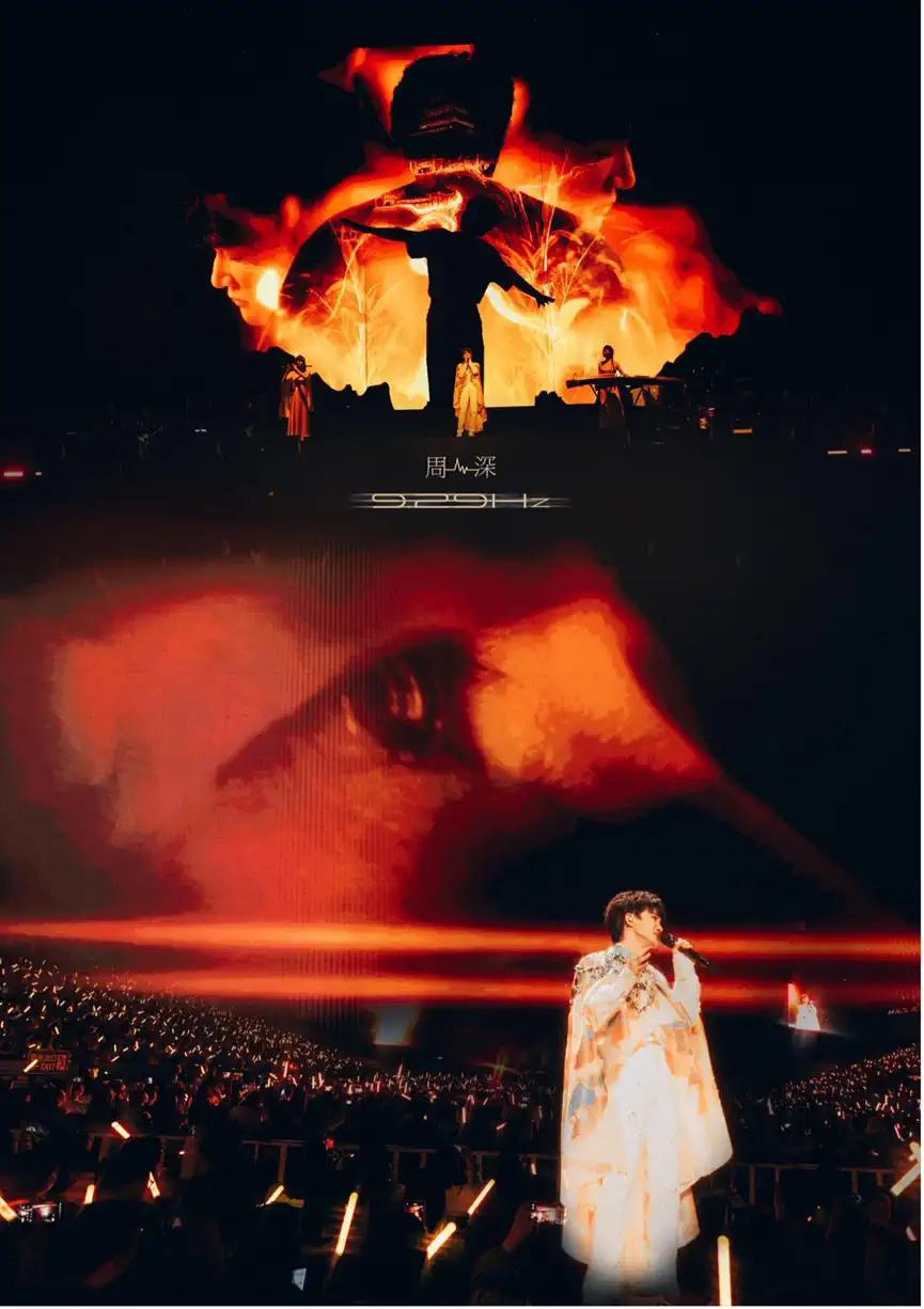 9.29Hz属于次声波,原本是人类听不到的声音,此次巡演以“9.29Hz”为主题,既是代表了周深探究自我、回归本心的旅程,也是他以音乐代替语言,寻找共同频率的召唤。将声音转变为音乐,用视觉让音乐变得更加立体。