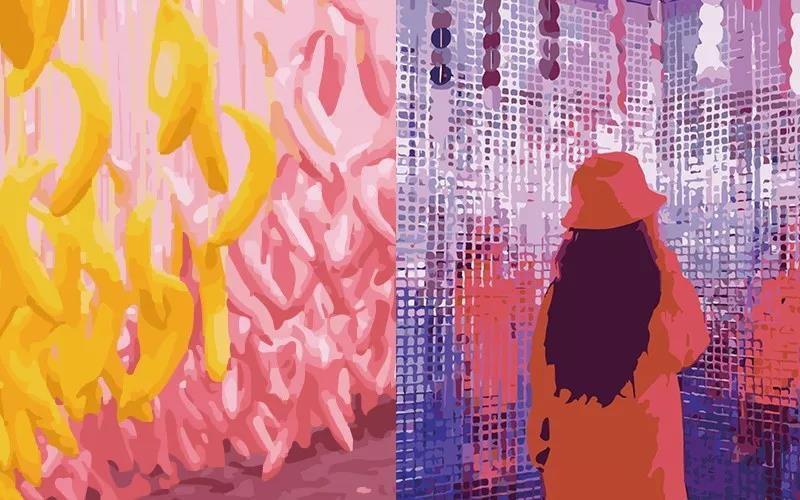 极具少女心的展馆!墙面全部砌成半粉半黄挂满倾斜的香蕉,少女心瞬间复苏!