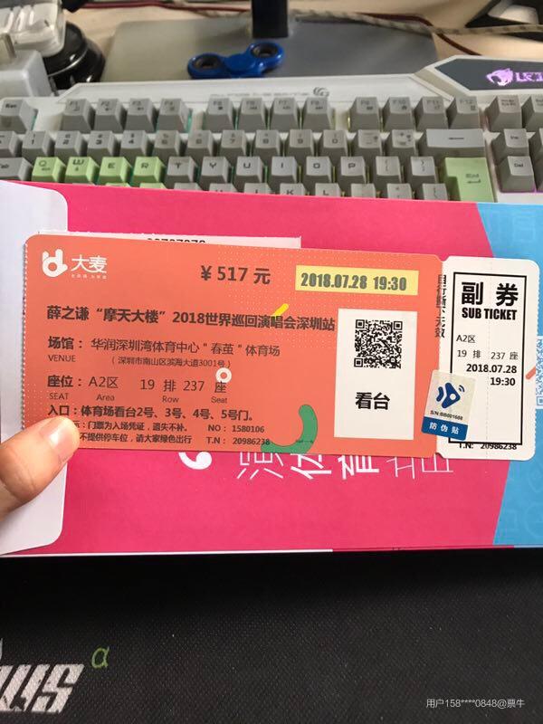 薛之谦这次是看到原价出售,所以抢了张。517的位置挺远的哈哈哈,都跟317差不多了。但是对这个位置还算满意吧哈,很正中,看到比我们前但是比我们侧好多的位置视觉不是很好。