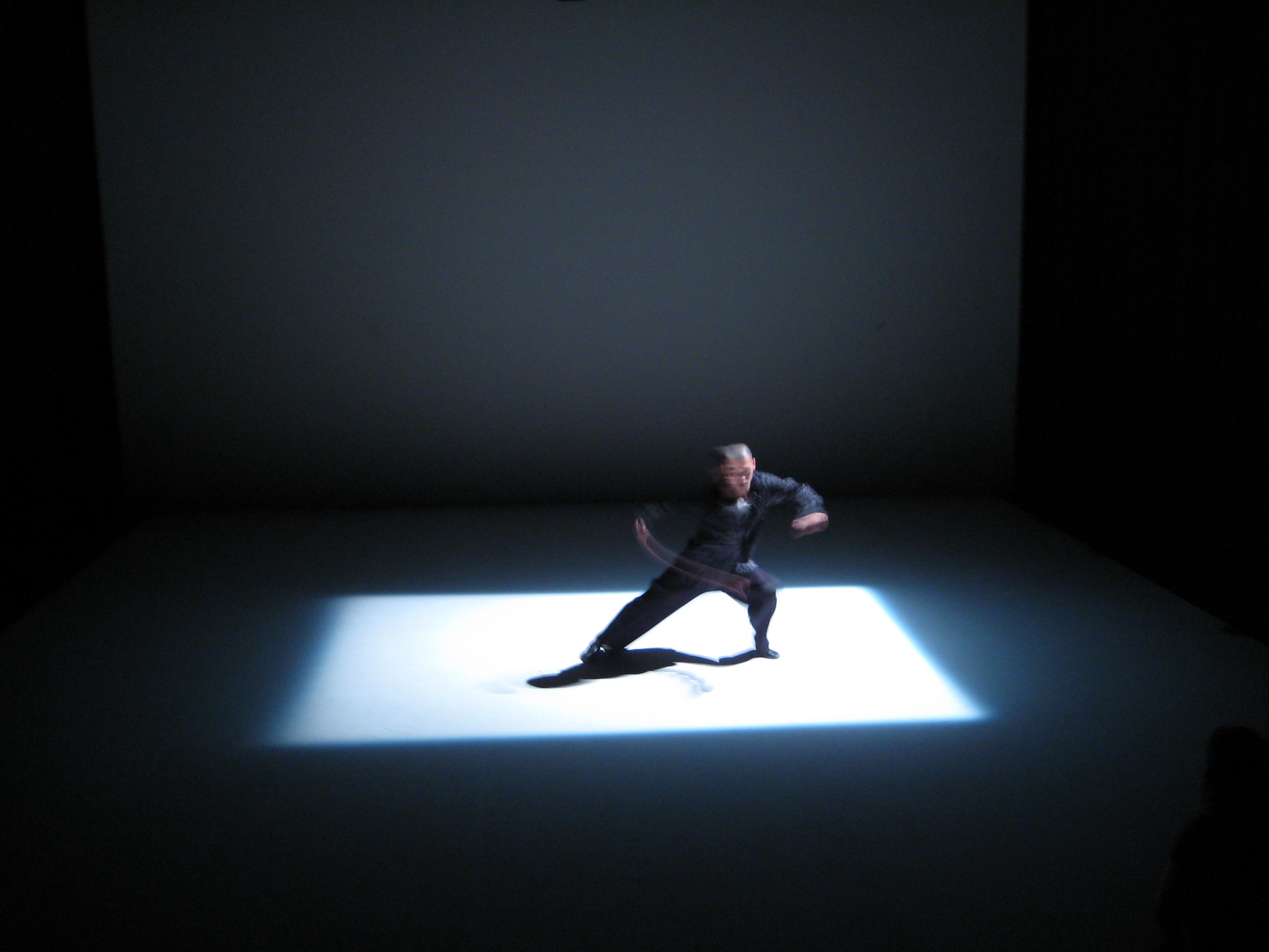 在《格局N次方》这部作品中,光线不时地在各个短暂的片段中切换,而舞蹈动作的内涵与光线的变幻步调一致。在某个片段中,手臂的震荡动作不断加快,而光线则缓缓变暗;在下一个片段中,舞者身体的剧烈运动突然以机械化的动作停滞下来,同时舞者也暴露在放射形的灯光中。