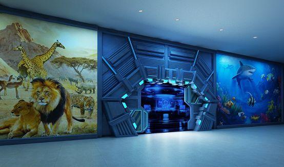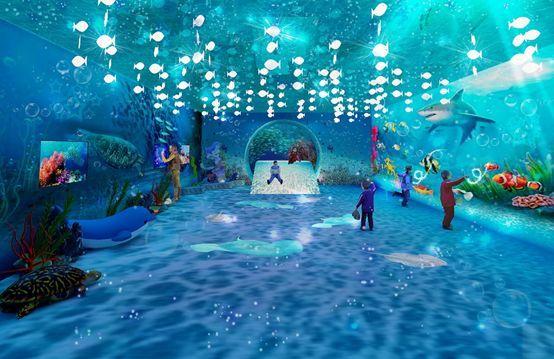 打开舱门我们通过互动滑梯进入海底世界