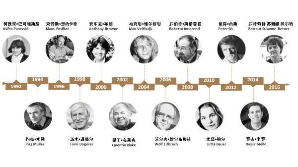 创立半个世纪以来,共有27位来自世界各地的优秀插画家凭借长期以来在童书领域作出的卓越贡献获此殊荣,其中耳熟能详的安东尼o布朗、莫里斯o桑达克、罗伯特o英潘、安野光雅……
