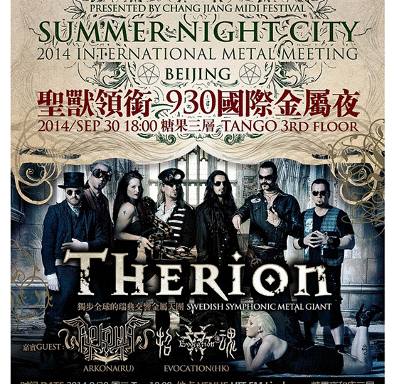 Therion已经开始欧洲巡演了,9月,乐队将带着最新专辑来中国五城巡演: