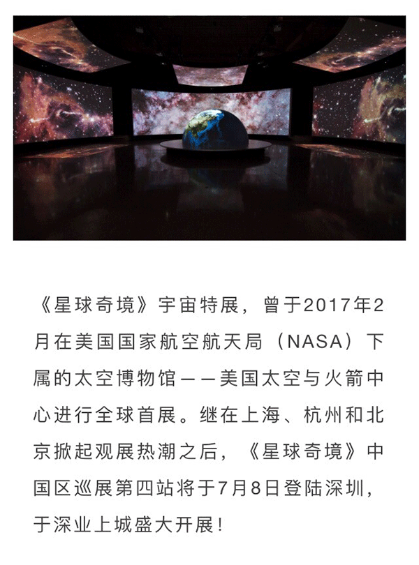 前NASA宇航员Terry Virts将在《星球奇境》深圳站开幕第一周内到访现场,来到现场带大家看展览,并举办科普公益讲座,分享他独一无二的“太空人”生活!具体时间和地点,敬请关注进一步消息!