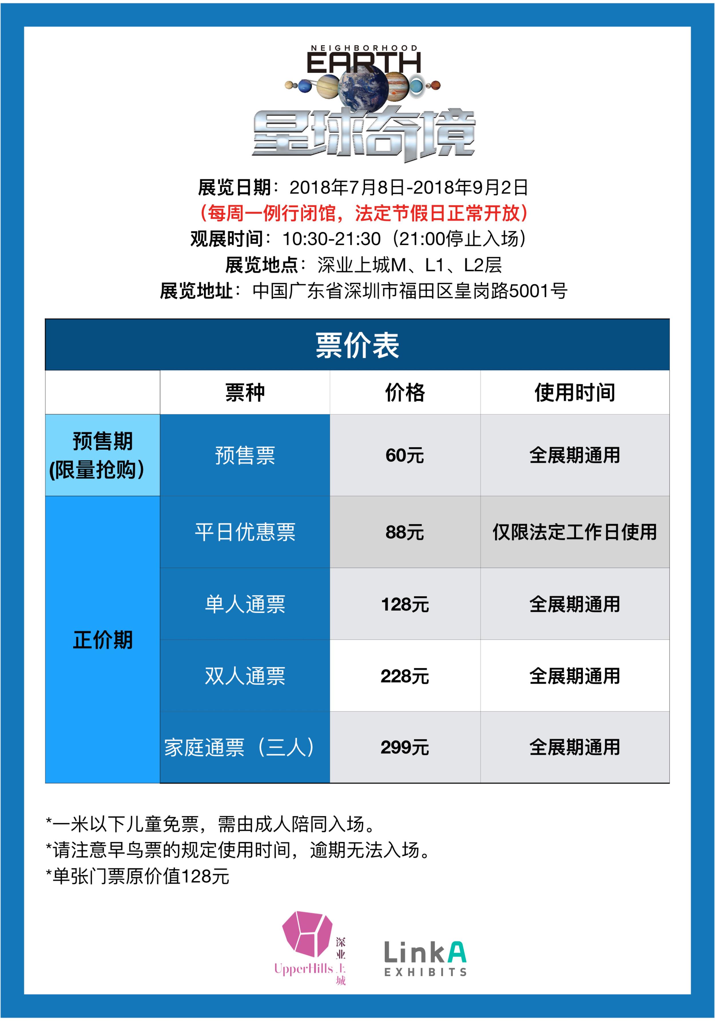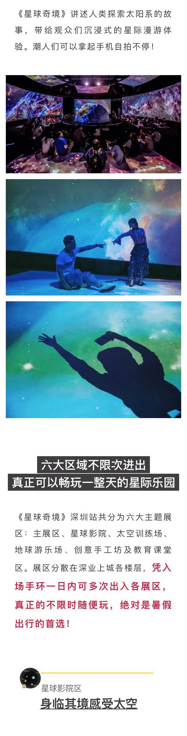 | 其他说明 | 1.1-6岁儿童需由一名成人陪同游玩,每位成人可免费携带一名1米以下儿童入场;2.凭电子票至票务处(B1、L1均设有票务处)兑换入场手环,并由工作人员当场戴上后方可入场,手环拿下后即作废。手环一日有效,一日内可多次入场。【购票须知】1.如遇客流高峰,需排队入场,请听从现场工作人员的引导; 3.展区内请勿大声喧哗、饮食、吸烟;请勿使用闪光灯。 4.展区内部分区域光线较暗,请注意脚下楼梯及斜坡,禁止在场馆内逆行、奔跑; 5.带小孩的观众请照看好自己的小孩,以免发生意外; 6.购票前请认真阅读票品规则及购票信息后付款;如因个人原因需退票,一概不予处理; 7.购票时请认准官方购票平台,如在非官方购票平台购买假票,一经发现概不予入场; 8.预计周末节假日观展人数较多,为达到更好观展体验效果,将限制单次入场人数,可能会出现较长时间排队现象,请提前规划时间或选择工作日前往观展,给您带来不便,敬请谅解。9.如遇台风、暴雨等恶劣天气影响展区正常运行,展区可能会临时关闭,给您带来不便,敬请谅解。 10.关于随门票附赠的宇宙PASSPORT,其相关使用和优惠,最终解释权归主办方所有。 【温馨提示】 《星球奇境》展览每日最高限流4000位入场名额。在观展人流量较大的情况下,为保障观众体验效果,主办方将实施大客流管控,按照每日4000人进行限流。 | 电子票 | 本项目支持凭电子票入场。 -请至少提前一天购买,开演前24小时内,票牛会发送取票短信,请按短信提示内容取票。 |