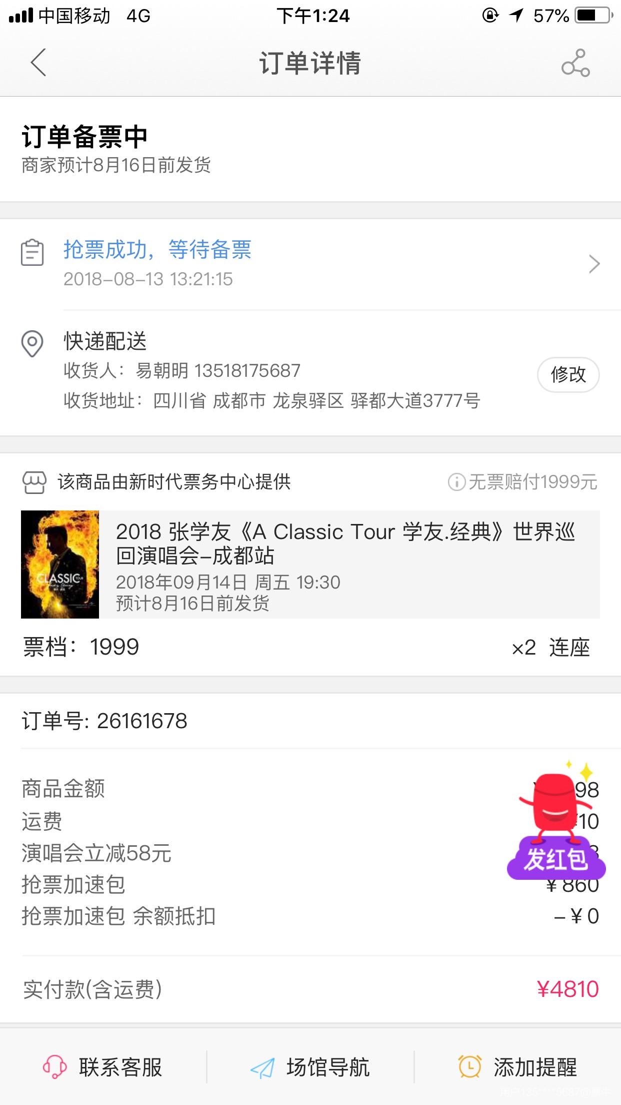 | 实体票 | 本项目支持凭实体票入场,支持以下取票方式: - 快递配送:运费10元(V4及以上会员包邮),顺丰发货。 - 现场取票:票牛工作人员将在演出开场前1小时至现场派票。工作人员联系方式、具体取票地点将在演出当天以短信通知发送至预留的手机号。 |