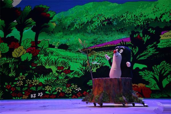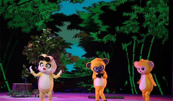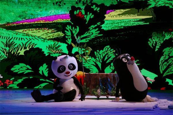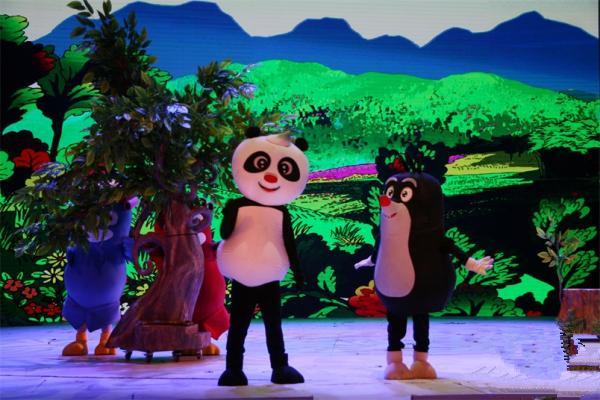 卡通舞台剧《熊猫和小鼹鼠》故事梗概:朱雀红和朱雀蓝举着"微飘"在森林里飞来飞去,传递一条叫人惊喜的信息:熊猫的好朋友、可爱的小鼹鼠决定在中国的森林里安家。这个信息一下子成了爆炸新闻,森林里的小动物们乐翻了天,他们动脑筋,为小鼹鼠准备各种奇特的礼物,有的准备了五星级竹床,有的准备了核桃、花生、板栗等干果,也有的准备了新鲜的蔬菜水果,还有的编织了精美的地毯。狐狸这两天行动诡秘,引起了小动物们的疑心,设立了瞭望哨用望远镜观察,分两路兵马暗地里跟踪,看狐狸到底要搞什么鬼名堂……温暖助人的爱心,好看好玩的故事,让观众从进了剧场就兴奋、激动、开怀畅笑。