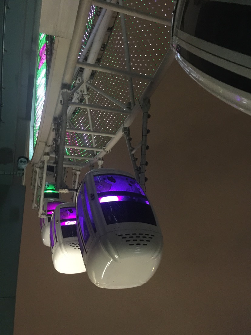 六一儿童节去的,晚间乘坐摩天轮感觉还是不错的,就是风景略差,有点可惜。还没来得及放音乐就结束了……