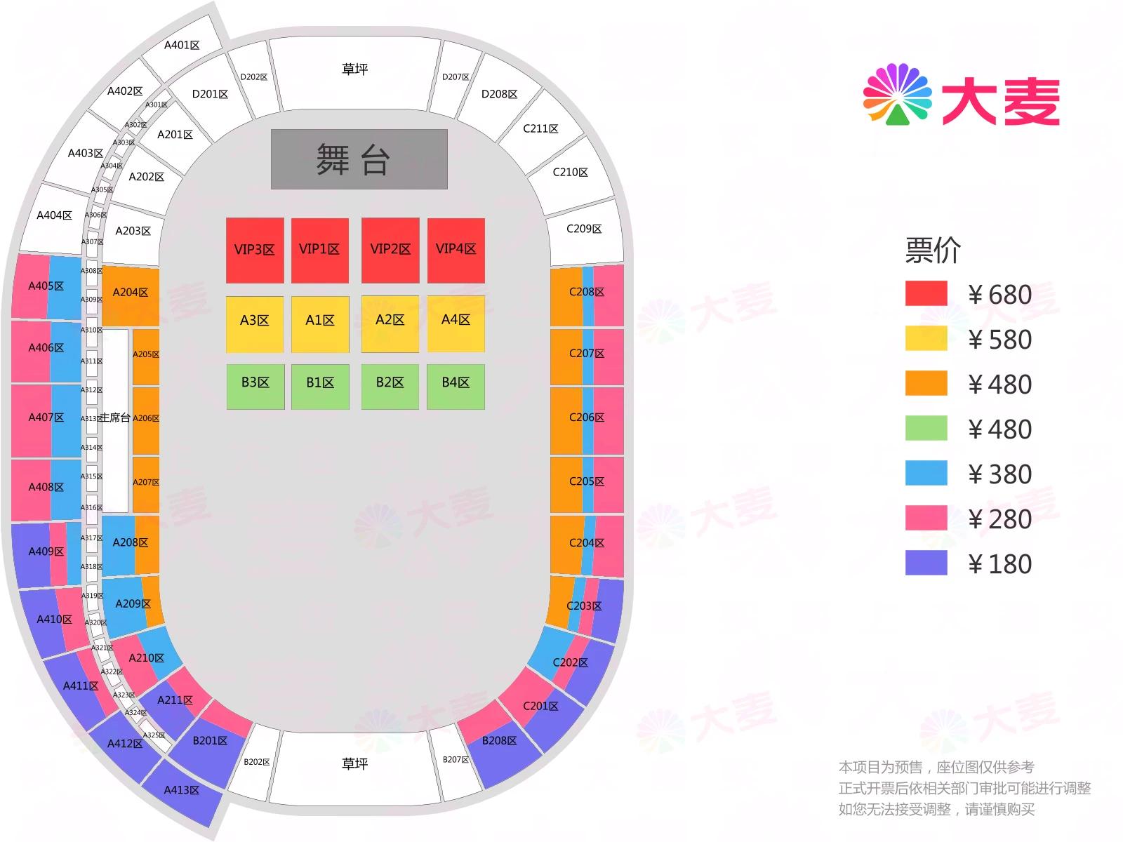 | 服务费说明 | 为了给您提供便利的在线购票服务,票牛为此投入大量的平台技术支持、运营维护支持,并联合平台入驻商家、第三方在线支付服务商、第三方合作商等合作方为您提供服务,基于前述平台成本及合作方服务费用,票牛向您收取不超过票款5%的平台服务费(最高不超过400元)。 票牛收取的平台服务费,主要可能包括如下内容:1.票牛的线上平台和软件系统开发维护成本。2.支付宝、微信等第三方支付服务商收取的支付手续费用。3.物流公司收取的票品寄送费用(如纸质票)。4.客户服务成本以及短信、电话等通道费用。5.为用户提供购票保障服务对应的运营与管理成本。6.其它为完成用户订单必须的相关服务成本、人员成本等。 | 座位类型 | 请按门票对应座位,有序对号入座 |