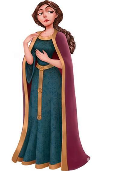 邪恶又自私,是本剧中大的反派人物,她为了自己能永驻青春而一再利用乐佩,把她关在不为人知的森林高塔中,后来因为弗林割断了乐佩的长发后迅速衰老,被帕斯卡尔用断发绊倒,摔下高塔,讽刺的是没落地,就化为白烟,地上的只有她的衣服。