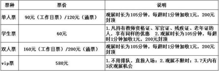 8. 观展时长为105分钟,每超时1分钟,加收1元,200元封顶。