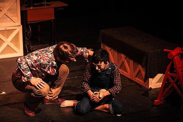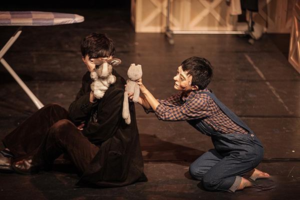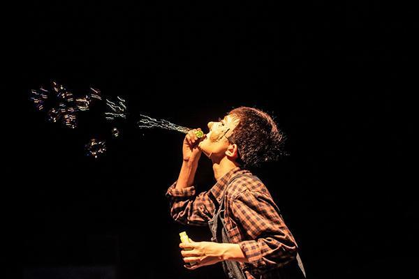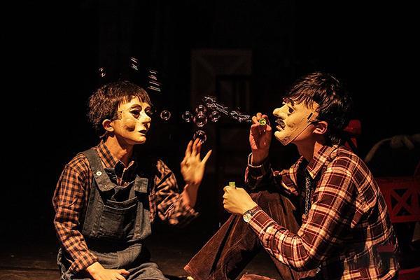 默剧一般表现的故事情节和人物关系普遍简单。《停下吧,偶人》是一个简单的故事,为形式言说内容提供了可能,本剧完整的实现了这种可能。肢体表现,是支撑整部作品的主要戏剧语言。它聚焦了故事的一切表达,包括情节的推进,人物性格的表现、感情的宣叙。所以,肢体表演的表现力,是考察这部作品是否具有艺术感染力的重要标准。