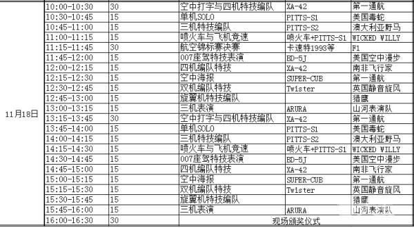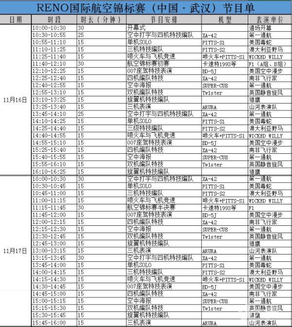 RENO国际航空锦标赛(中国武汉)节目单