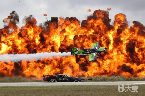 在这里,你能看到两辆"喷火龙"拖着6米长的尾焰,与飞机进行竞速;