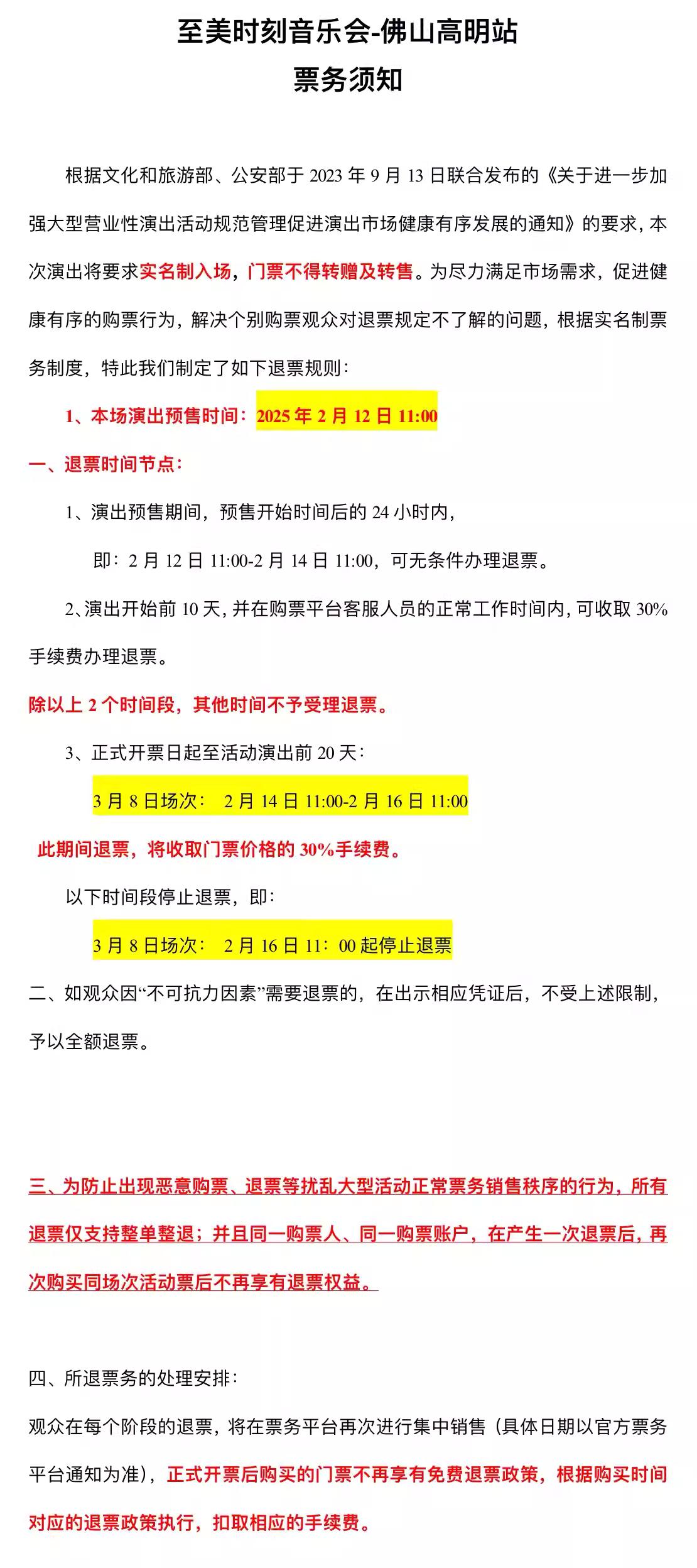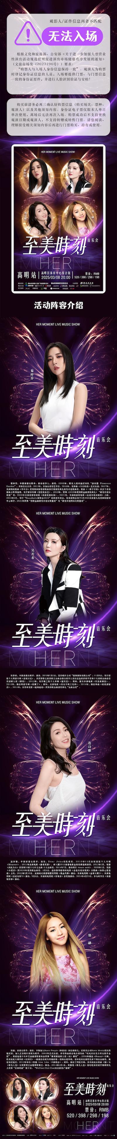 | 限购说明 | 每单限购6张 | 重复购票说明 | 同一位“实名观演人”请勿在多个售票平台重复购票,一位“实名观演人”的身份信息对应同场次的一张门票。 若同一位“实名观演人”被发现存在多个购票平台购买同场次行为,由该行为产生的无效重复订单、退票手续费、过期不可退票、无法入场等所有损失,均由购票人自行承担。 |