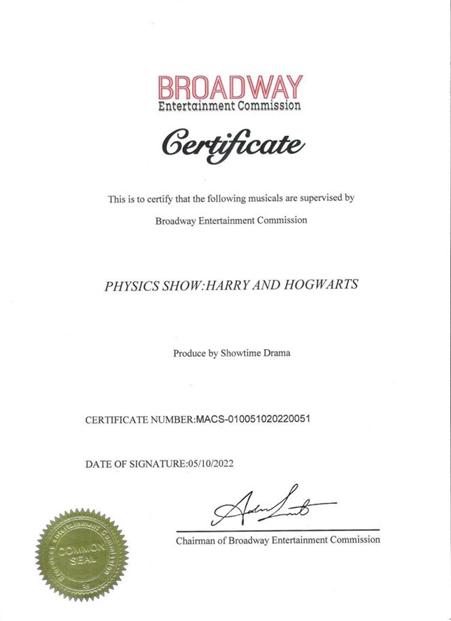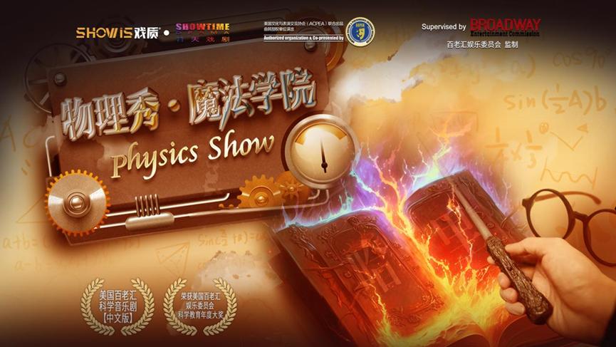 美国百老汇正版授权科学音乐剧《物理秀·魔法学院》,是由美国百老汇娱乐委员会(BROADWAY Entertainment Commission)、美国文化与表演交流协会(ACPEA)联合出品并监制的,全国唯 一正版授权由戏质·竹天戏剧进行演出的舞台剧。