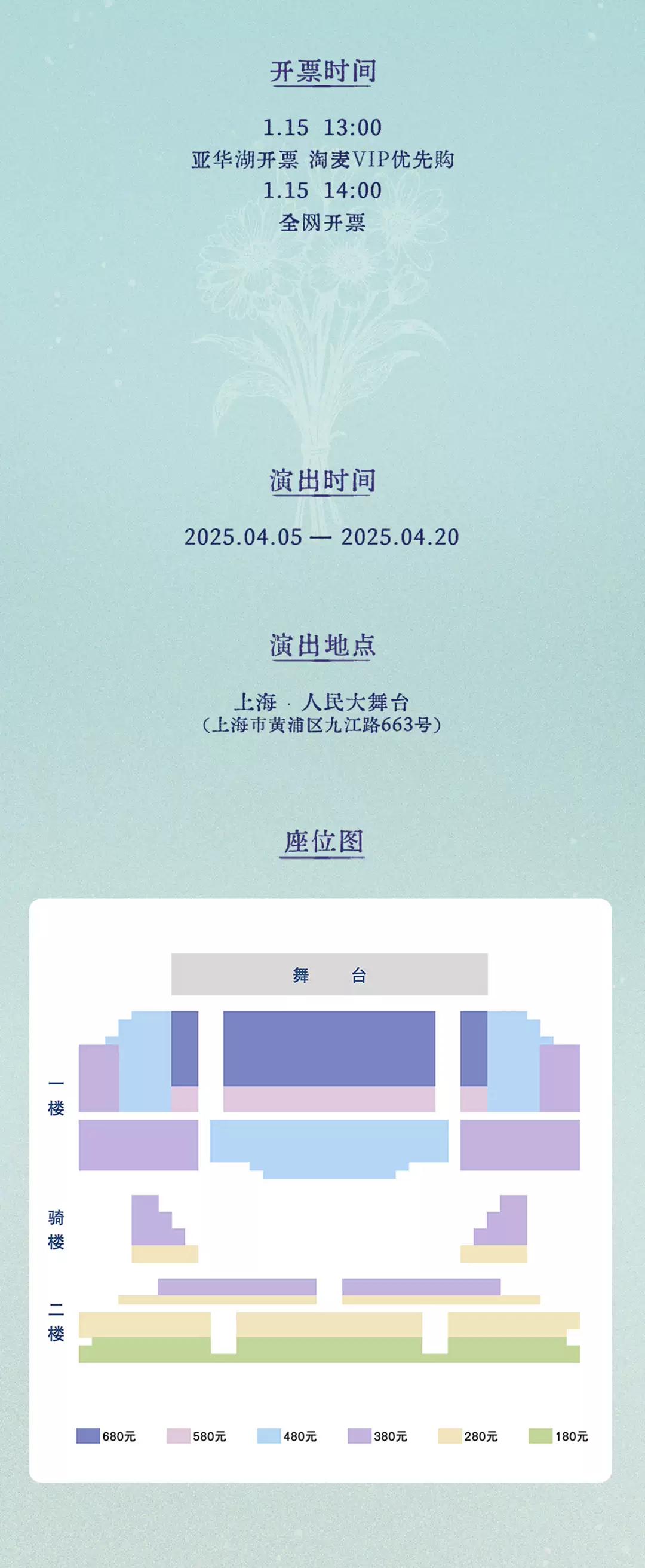 | 限购说明 | 每单限购6张 | 重复购票说明 | 同一位“实名观演人”请勿在多个售票平台重复购票,一位“实名观演人”的身份信息对应同场次的一张门票。 若同一位“实名观演人”被发现存在多个购票平台购买同场次行为,由该行为产生的无效重复订单、退票手续费、过期不可退票、无法入场等所有损失,均由购票人自行承担。 |