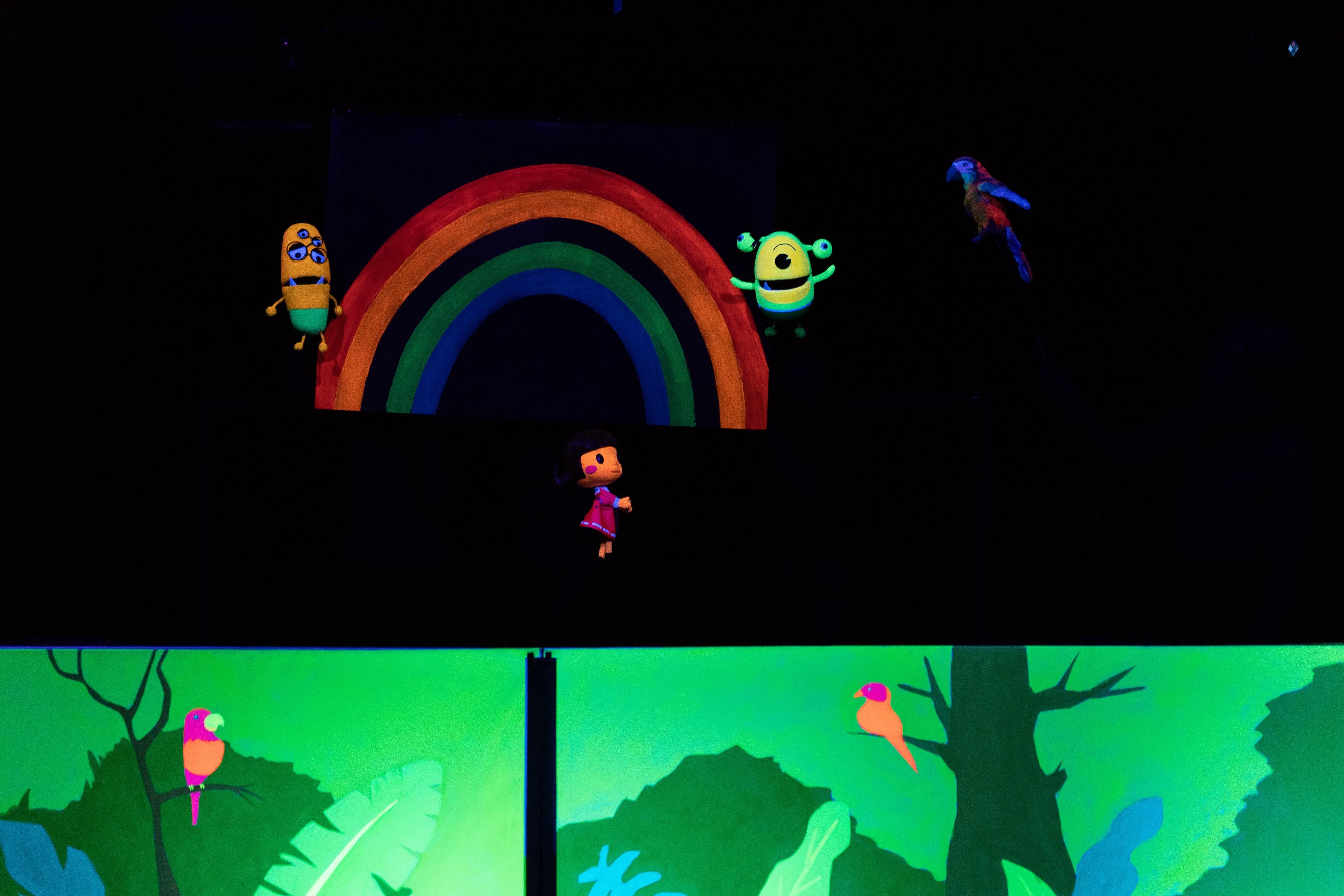 黑光剧是源自捷克的一种舞台表演形式,舞台布景是全黑的, 演员也全身着黑衣或蒙上黑布, 台前只以灯光照射。演出时演员手持涂上萤光的道具、或在服装某些部位涂上色彩, 结合精准灵巧的肢体动作,整体营造出奇幻的效果,呈现出一段充满想象的表演。