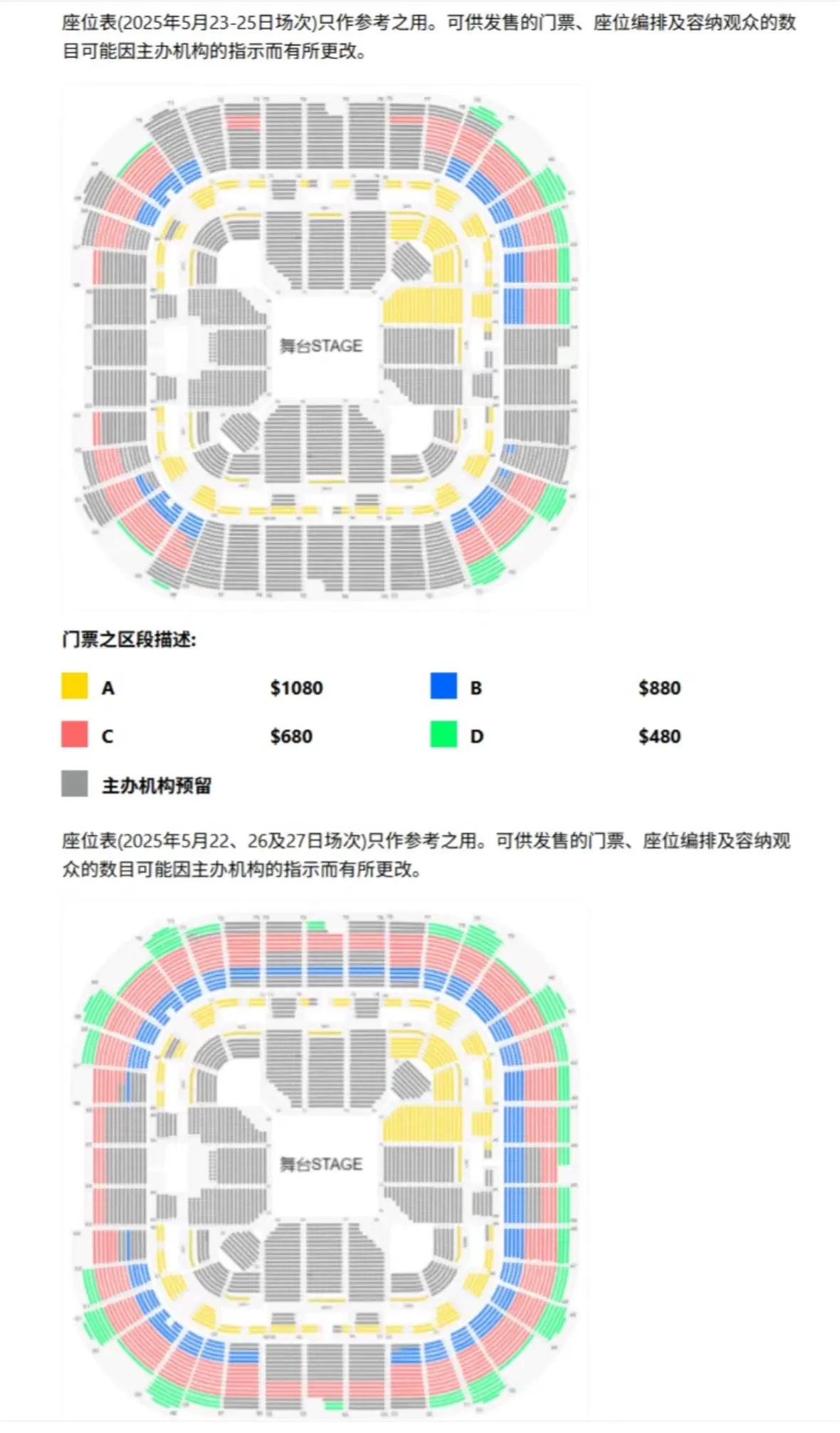 票价:HKD 1080 / 880 / 680 / 480