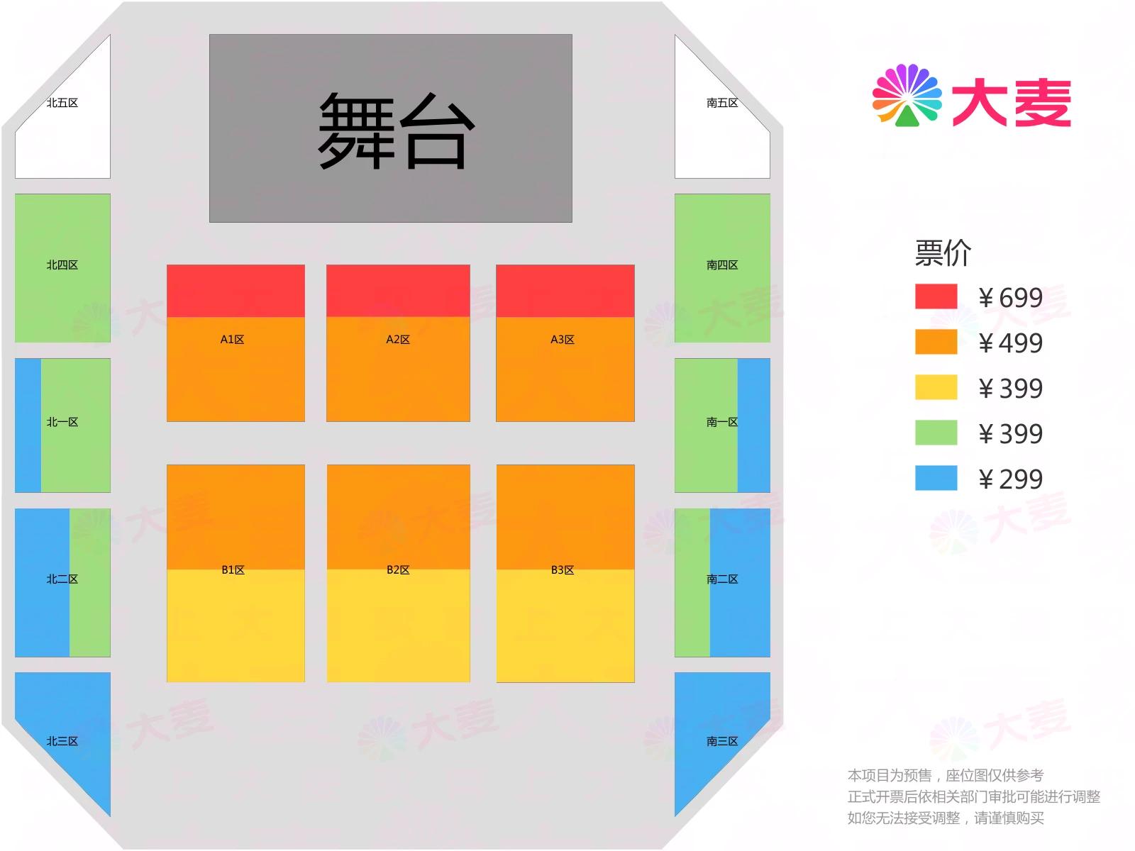 | 服务费说明 | 为了给您提供便利的在线购票服务,票牛为此投入大量的平台技术支持、运营维护支持,并联合平台入驻商家、第三方在线支付服务商、第三方合作商等合作方为您提供服务,基于前述平台成本及合作方服务费用,票牛向您收取不超过票款5%的平台服务费(最高不超过400元)。 票牛收取的平台服务费,主要可能包括如下内容:1.票牛的线上平台和软件系统开发维护成本。2.支付宝、微信等第三方支付服务商收取的支付手续费用。3.物流公司收取的票品寄送费用(如纸质票)。4.客户服务成本以及短信、电话等通道费用。5.为用户提供购票保障服务对应的运营与管理成本。6.其它为完成用户订单必须的相关服务成本、人员成本等。 | 座位类型 | 请按门票对应座位,有序对号入座 |