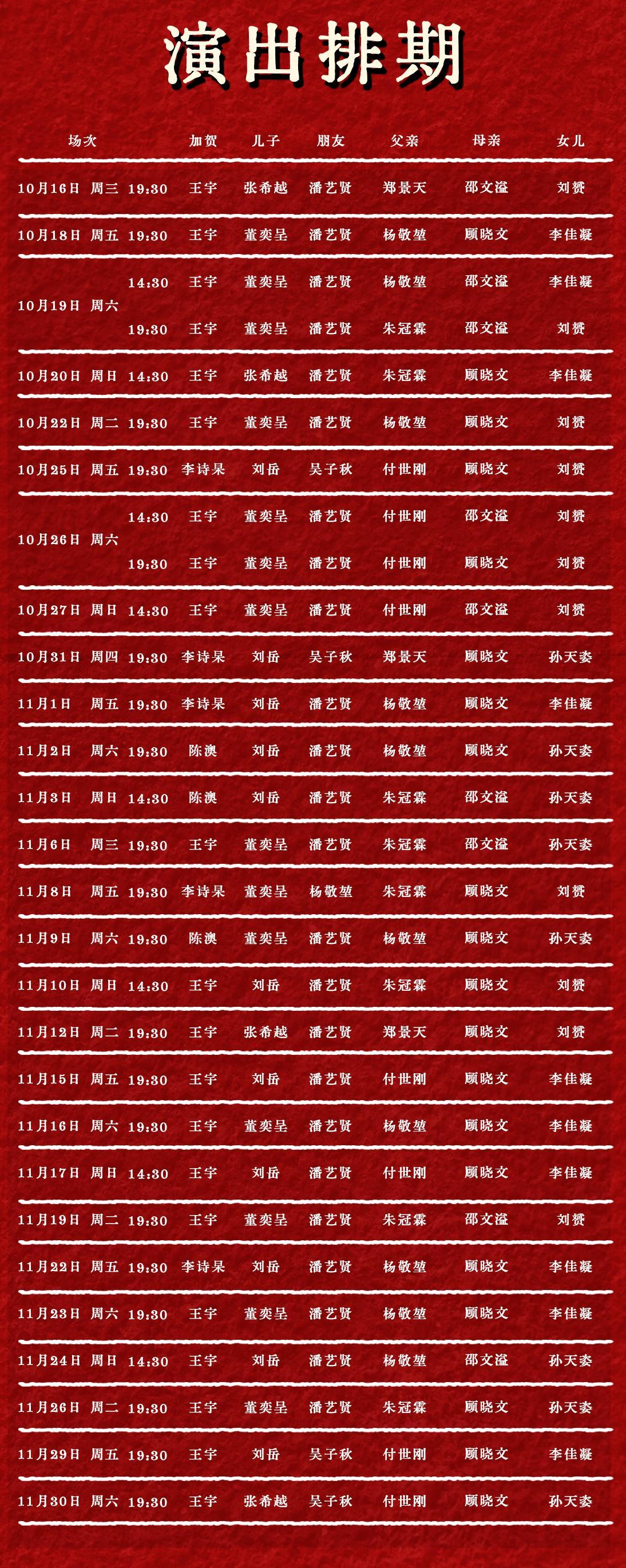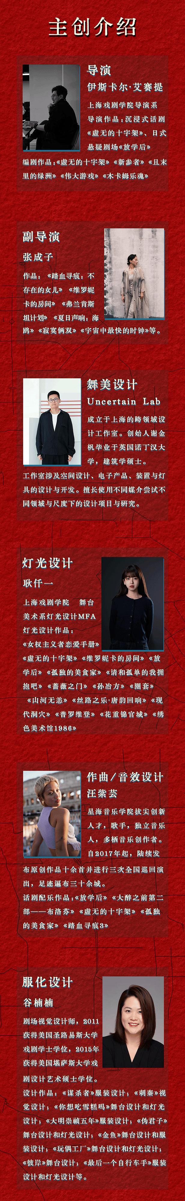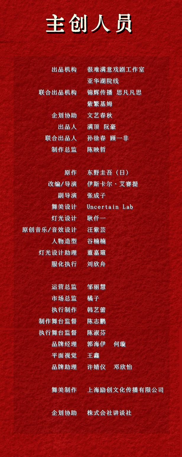 本剧全程设有迟到点,迟到或演出期间离场观众均需在场外等候片刻,待入场通知后方可入场。请合理安排您的出行时间谨防迟到!