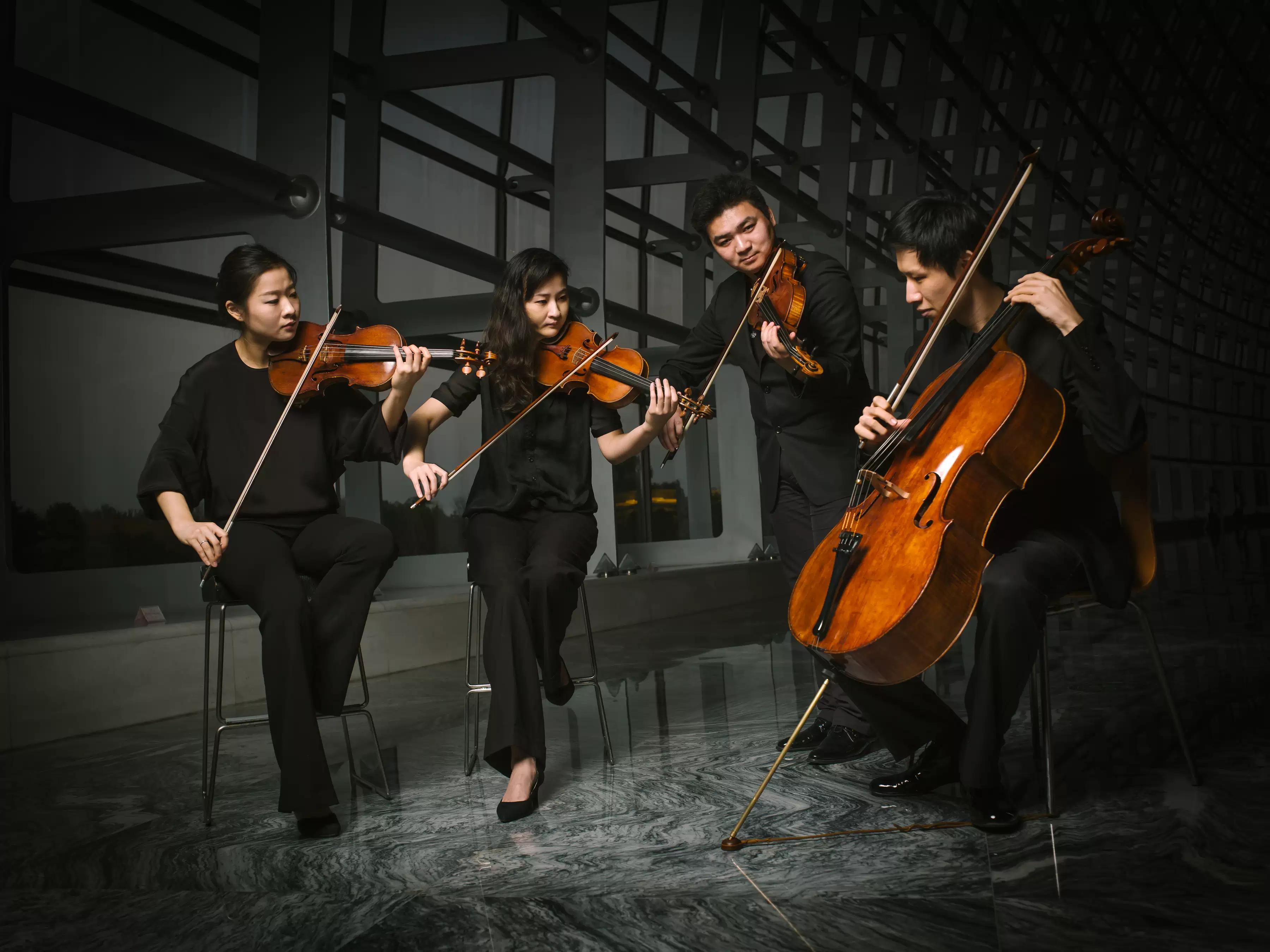 成立于2005年的琥珀四重奏今年即将迎来20岁生日。这支被指挥大师洛林·马泽尔盛赞的四重奏组合,是中国最具国际影响力的职业弦乐四重奏团体之一。作为首支在国际职业室内乐赛事(2013年墨尔本亚太国际室内乐比赛)中包揽最高奖、四重奏第一名与现代作品演绎奖的组合,他们开创了中国室内乐历史新纪元,并获德国G.Henle Verlag“弦乐四重奏大使”及法国BAM CASES“音乐大使”称号,成为中央音乐学院建校以来首 个驻校四重奏团。自成立以来,琥珀四重奏获得了国际乐坛与社会各界人士的高度赞誉。国际室内乐大师、阿尔班·贝尔格四重奏第一小提琴皮希勒称琥珀四重奏为“国际四重奏领域的引领者之一”;国际中提琴大师米歇尔·库格形容他们为“年轻的世界顶 级弦乐四重奏之一,他们的音乐触动我心";诺贝尔文学奖获得者莫言为琥珀四重奏题字:"余音绕梁"。金秋时节,这支贯通中西经典的室内乐组合,将踏上一段穿山越海的音乐之旅。