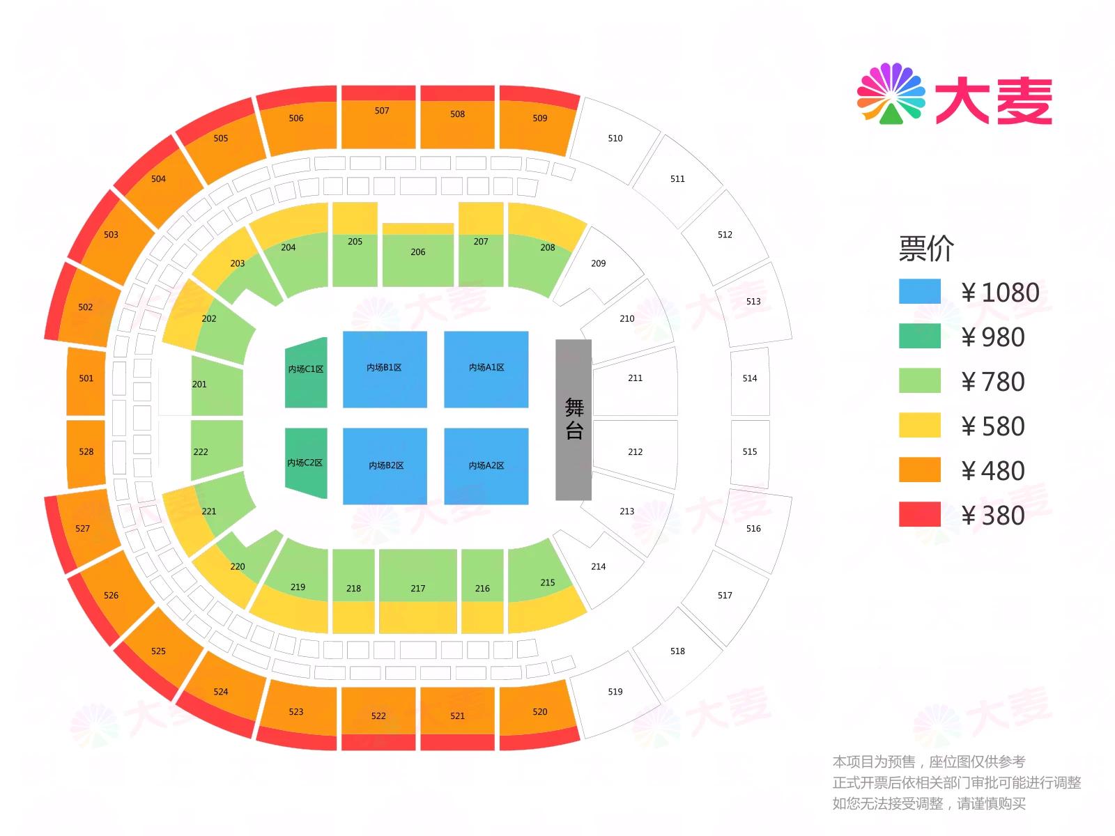 | 服务费说明 | 为了给您提供便利的在线购票服务,票牛为此投入大量的平台技术支持、运营维护支持,并联合平台入驻商家、第三方在线支付服务商、第三方合作商等合作方为您提供服务,基于前述平台成本及合作方服务费用,票牛向您收取不超过票款5%的平台服务费(最高不超过400元)。 票牛收取的平台服务费,主要可能包括如下内容:1.票牛的线上平台和软件系统开发维护成本。2.支付宝、微信等第三方支付服务商收取的支付手续费用。3.物流公司收取的票品寄送费用(如纸质票)。4.客户服务成本以及短信、电话等通道费用。5.为用户提供购票保障服务对应的运营与管理成本。6.其它为完成用户订单必须的相关服务成本、人员成本等。 | 座位类型 | 请按门票对应座位,有序对号入座 |