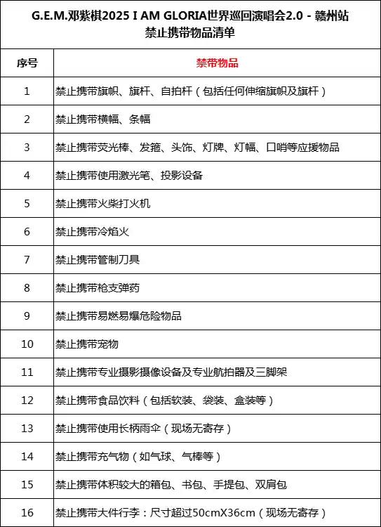 | 儿童入场提示 | 儿童一律凭票入场 | 禁止携带物品 | 食品、饮料、相机、充电宝、打火机等 |