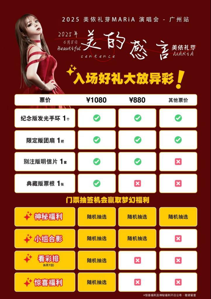 6月8日的广州站是小美首次在羊城开唱,为每一位咩利羊准备了诚意满满的【入场礼物】!更有【神秘和惊喜福利】等待大家亲自揭晓哦!