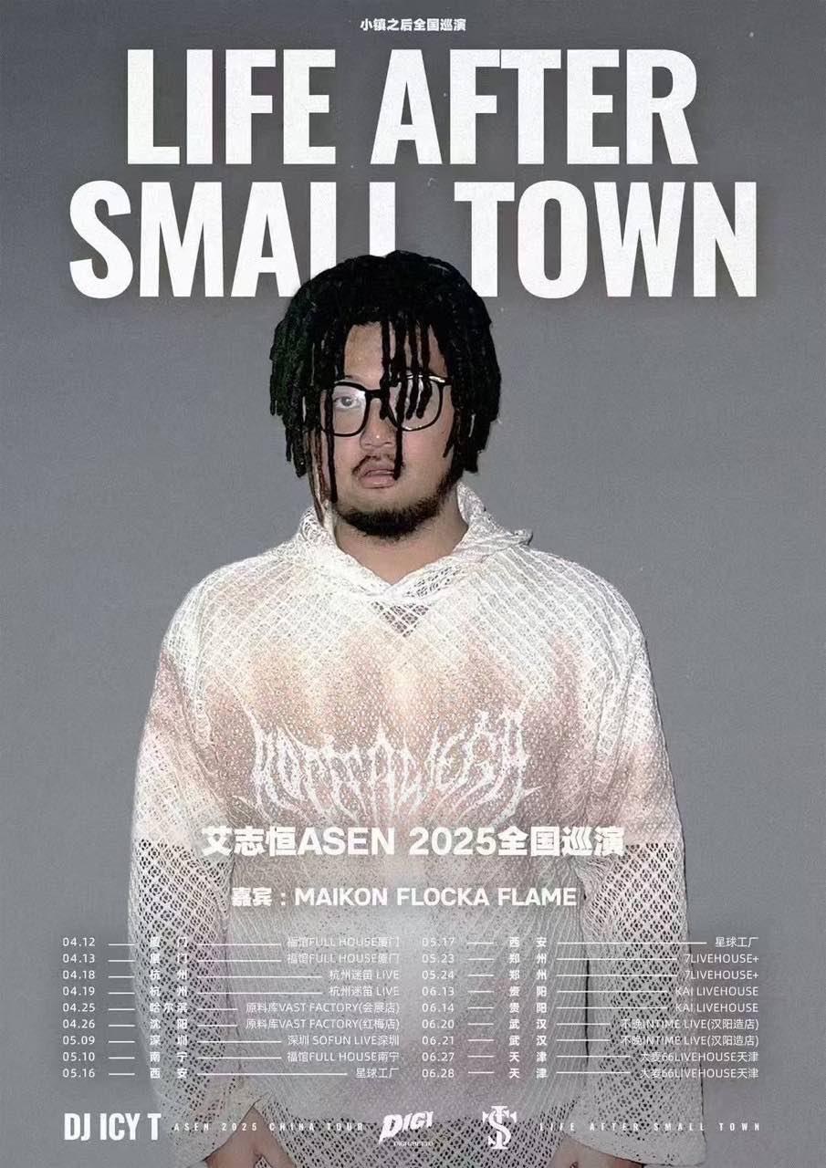 2024年发布全新专辑《Life After Small Town》后,Asen带着全球巡演再度踏上了征程,将属于中国的说唱力量带到无数个国家和地区,新加坡、马来西亚、澳大利亚、美国......无数个“SOLD OUT”标牌横渡大洋席卷全球。