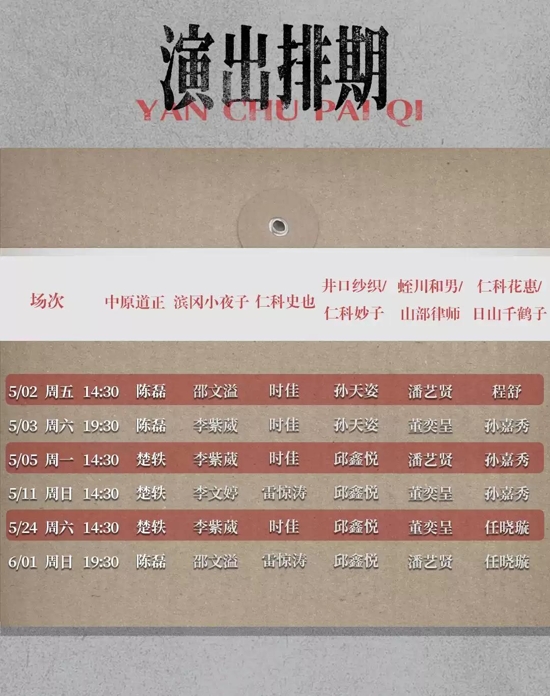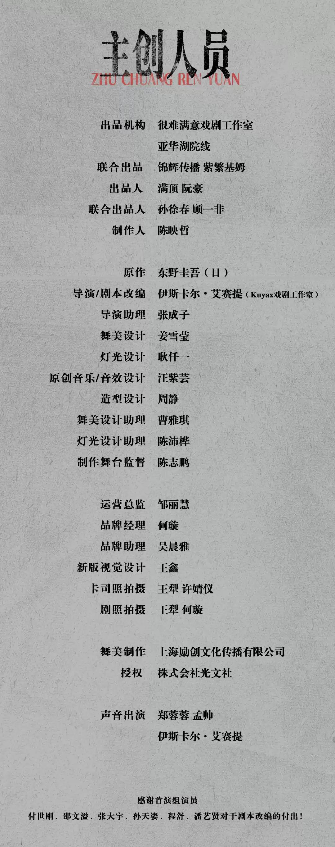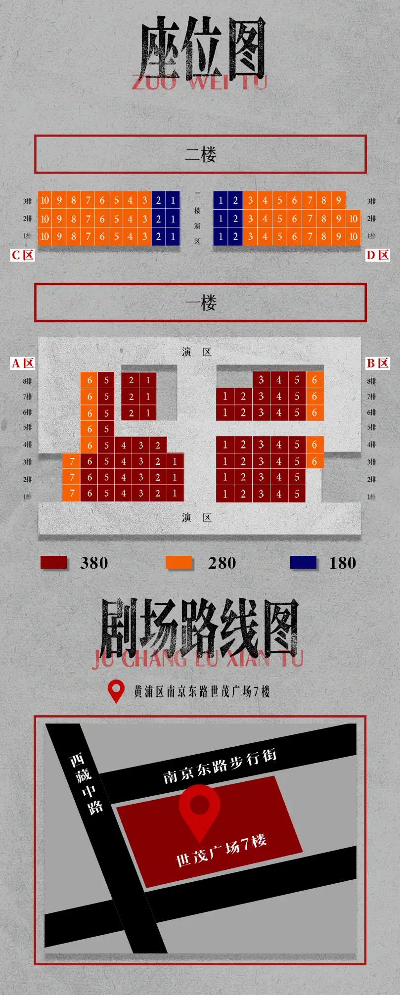 本剧全程设有迟到点,迟到或演出期间离场观众均需在场外等候片刻,待入场通知后方可入场。请合理安排您的出行时间谨防迟到!