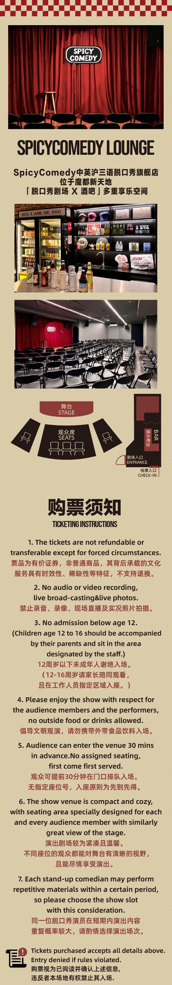 | 座位类型 | 请按门票对应座位,有序对号入座 | 儿童入场提示 | 12周岁以下未成年人谢绝入场;12至16周岁未成年人需由家长陪同,且在工作人员指定区域入座。 |