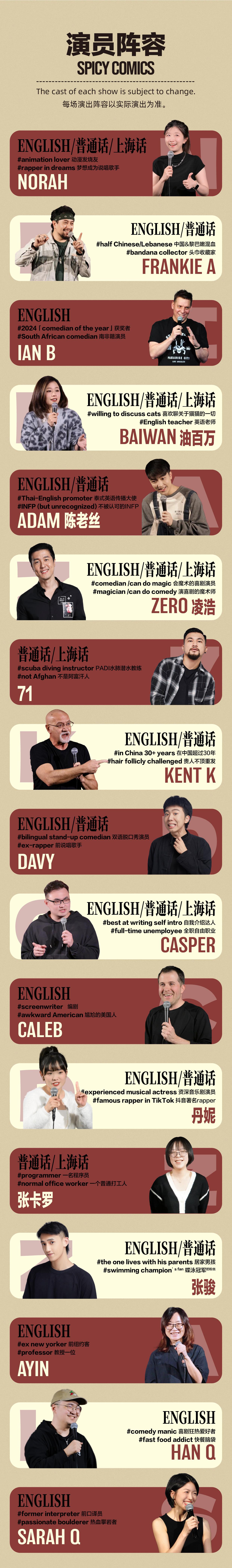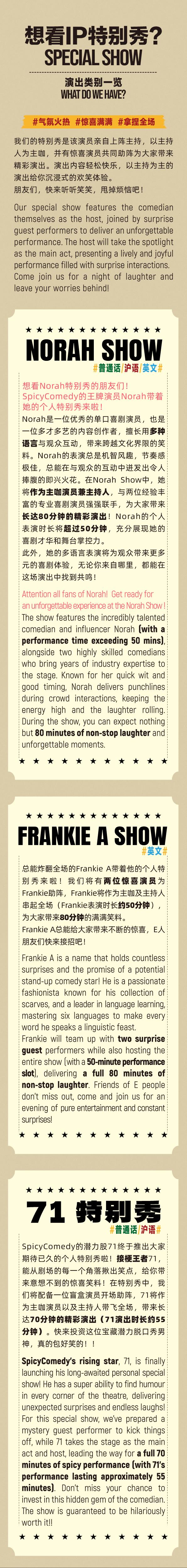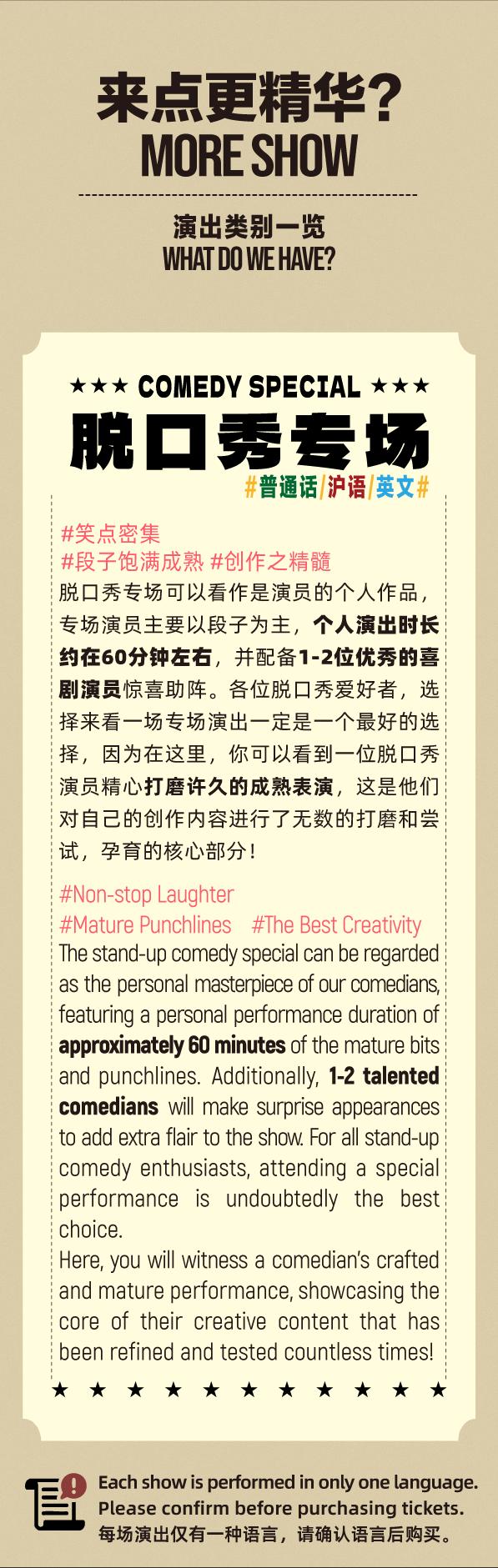 购前请知悉:特别秀表演中的主咖和开场演员可能会有部分内容与近期日常拼盘表演重复,如介意,请谨慎购买。