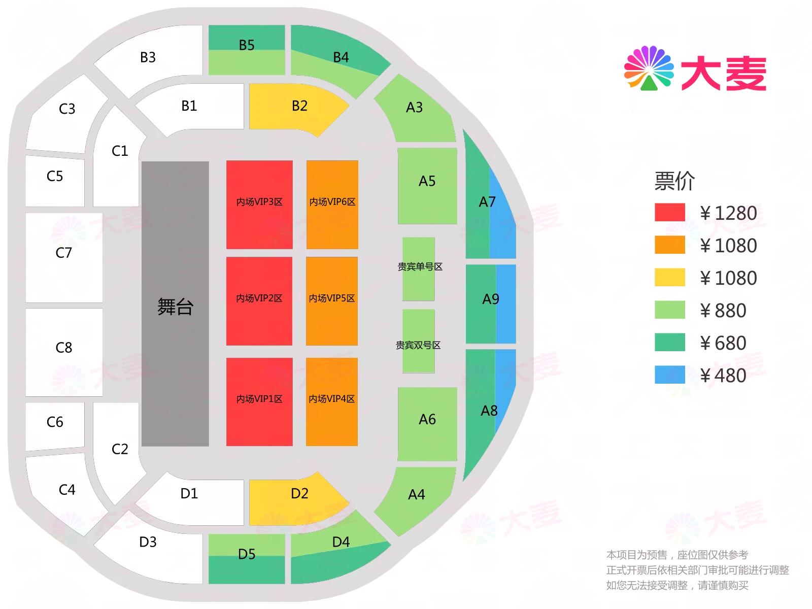 | 服务费说明 | 为了给您提供便利的在线购票服务,票牛为此投入大量的平台技术支持、运营维护支持,并联合平台入驻商家、第三方在线支付服务商、第三方合作商等合作方为您提供服务,基于前述平台成本及合作方服务费用,票牛向您收取不超过票款5%的平台服务费(最高不超过400元)。 票牛收取的平台服务费,主要可能包括如下内容:1.票牛的线上平台和软件系统开发维护成本。2.支付宝、微信等第三方支付服务商收取的支付手续费用。3.物流公司收取的票品寄送费用(如纸质票)。4.客户服务成本以及短信、电话等通道费用。5.为用户提供购票保障服务对应的运营与管理成本。6.其它为完成用户订单必须的相关服务成本、人员成本等。 | 座位类型 | 请按门票对应座位,有序对号入座 |