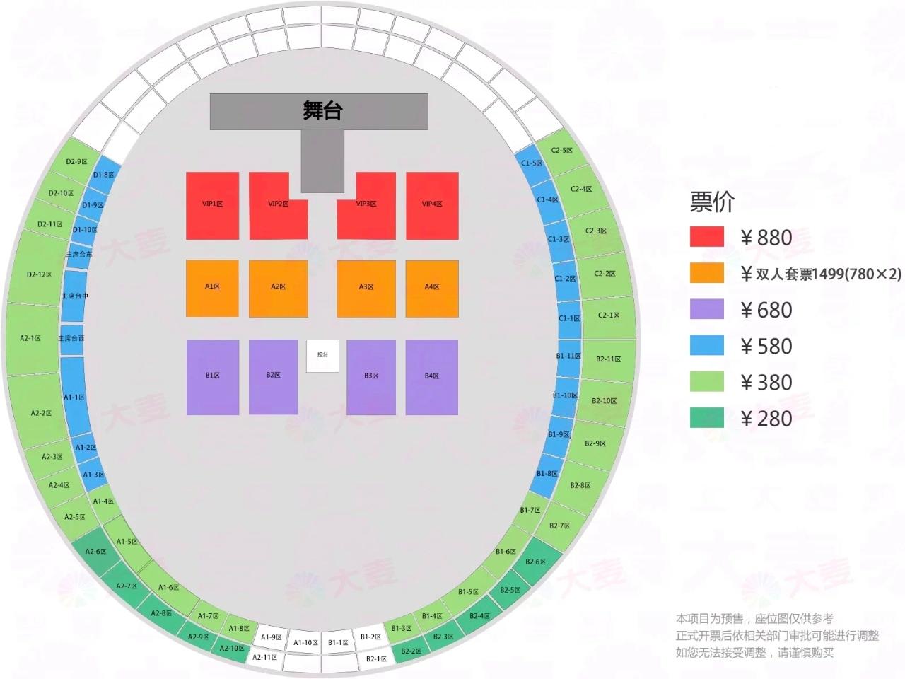 | 服务费说明 | 为了给您提供便利的在线购票服务,票牛为此投入大量的平台技术支持、运营维护支持,并联合平台入驻商家、第三方在线支付服务商、第三方合作商等合作方为您提供服务,基于前述平台成本及合作方服务费用,票牛向您收取不超过票款5%的平台服务费(最高不超过400元)。 票牛收取的平台服务费,主要可能包括如下内容:1.票牛的线上平台和软件系统开发维护成本。2.支付宝、微信等第三方支付服务商收取的支付手续费用。3.物流公司收取的票品寄送费用(如纸质票)。4.客户服务成本以及短信、电话等通道费用。5.为用户提供购票保障服务对应的运营与管理成本。6.其它为完成用户订单必须的相关服务成本、人员成本等。 | 座位类型 | 请按门票对应座位,有序对号入座 |