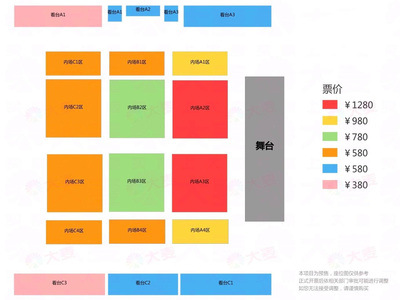 | 服务费说明 | 为了给您提供便利的在线购票服务,票牛为此投入大量的平台技术支持、运营维护支持,并联合平台入驻商家、第三方在线支付服务商、第三方合作商等合作方为您提供服务,基于前述平台成本及合作方服务费用,票牛向您收取不超过票款5%的平台服务费(最高不超过400元)。 票牛收取的平台服务费,主要可能包括如下内容:1.票牛的线上平台和软件系统开发维护成本。2.支付宝、微信等第三方支付服务商收取的支付手续费用。3.物流公司收取的票品寄送费用(如纸质票)。4.客户服务成本以及短信、电话等通道费用。5.为用户提供购票保障服务对应的运营与管理成本。6.其它为完成用户订单必须的相关服务成本、人员成本等。 | 座位类型 | 请按门票对应座位,有序对号入座 |