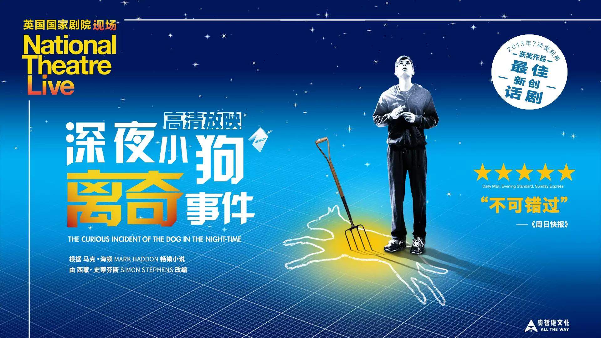 剧作家西蒙·史蒂芬斯根据马克·海顿的获奖小说《深夜小狗离奇事件》改编的同名话剧,由《战马》导演玛丽安妮·艾略特执导,再度征服戏剧界。它获得了包括最佳新剧、最佳男主角在内的7项奥利弗大奖,以及包括最佳话剧在内的托尼奖5项大奖。