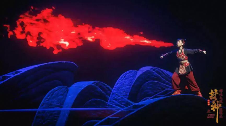 完美演绎神话故事,少不了特效的加持。这在“封神”舞台同样可以实现。剧目利用纱幕、多媒体、灯光、音效等技术,营造激烈紧张、充满国风韵味的打斗场面,调动观众的感官。