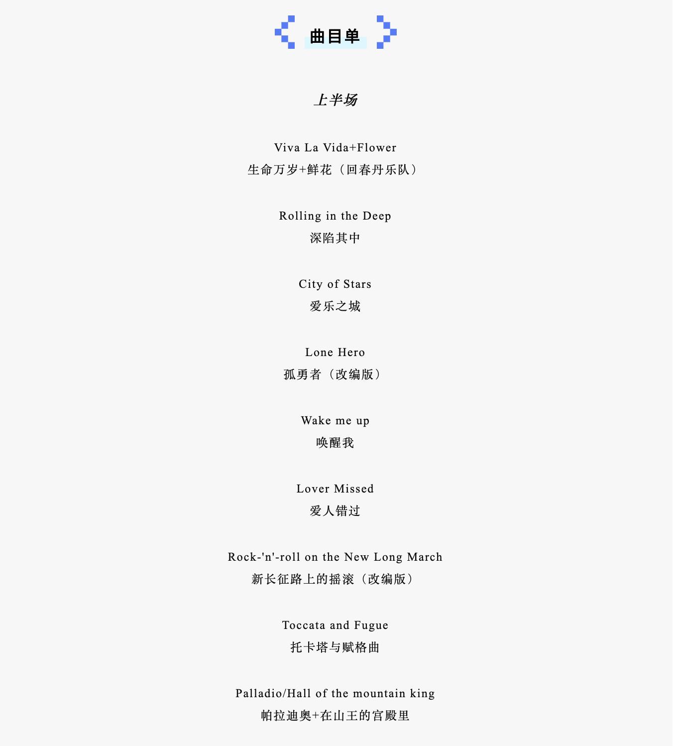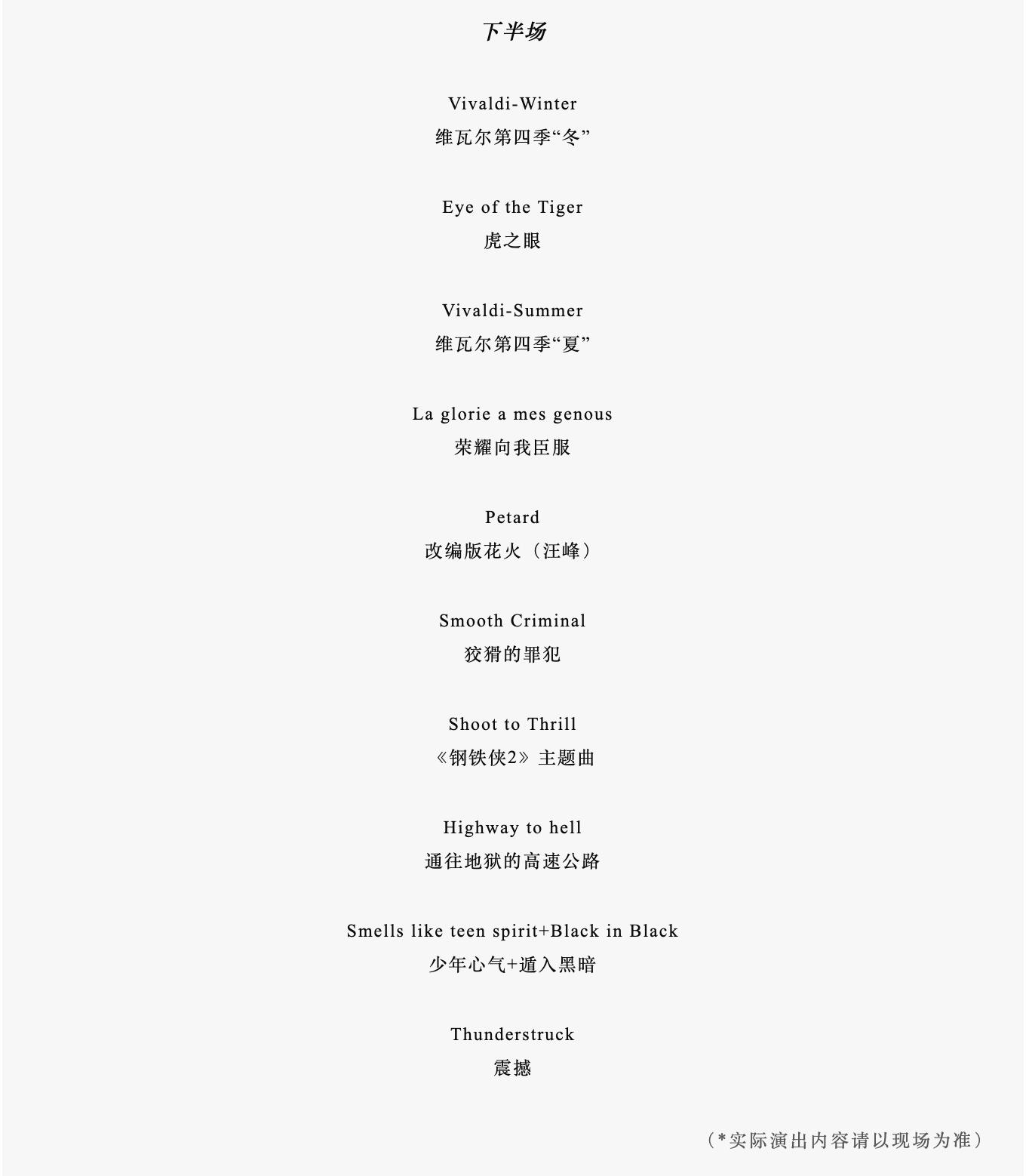 7、本场演出无身高限制,一人一票,凭票入场。