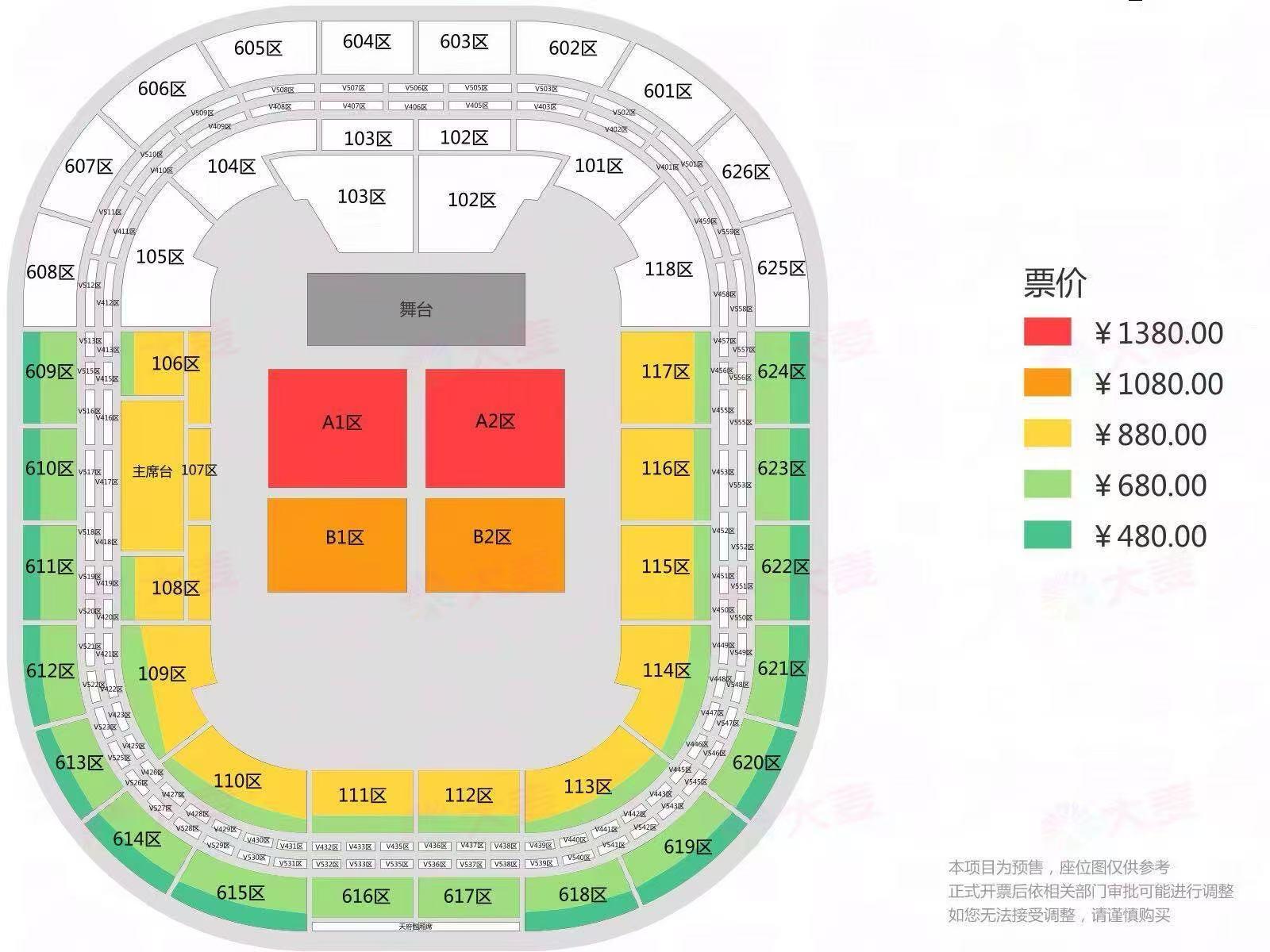 | 服务费说明 | 为了给您提供便利的在线购票服务,票牛为此投入大量的平台技术支持、运营维护支持,并联合平台入驻商家、第三方在线支付服务商、第三方合作商等合作方为您提供服务,基于前述平台成本及合作方服务费用,票牛向您收取不超过票款5%的平台服务费(最高不超过400元)。 票牛收取的平台服务费,主要可能包括如下内容:1.票牛的线上平台和软件系统开发维护成本。2.支付宝、微信等第三方支付服务商收取的支付手续费用。3.物流公司收取的票品寄送费用(如纸质票)。4.客户服务成本以及短信、电话等通道费用。5.为用户提供购票保障服务对应的运营与管理成本。6.其它为完成用户订单必须的相关服务成本、人员成本等。 | 座位类型 | 请按门票对应座位,有序对号入座 |