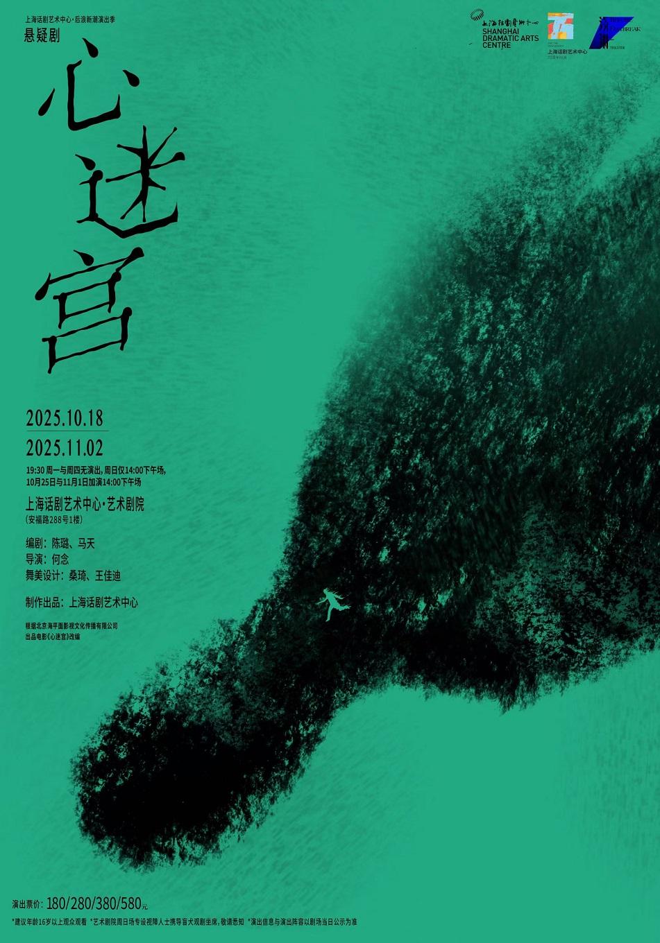 演出时间:2025年10月18日-11月2日 19:30(周一与周四无演出,10月25日与11月1日加演14:00下午场,周日仅14:00下午场)