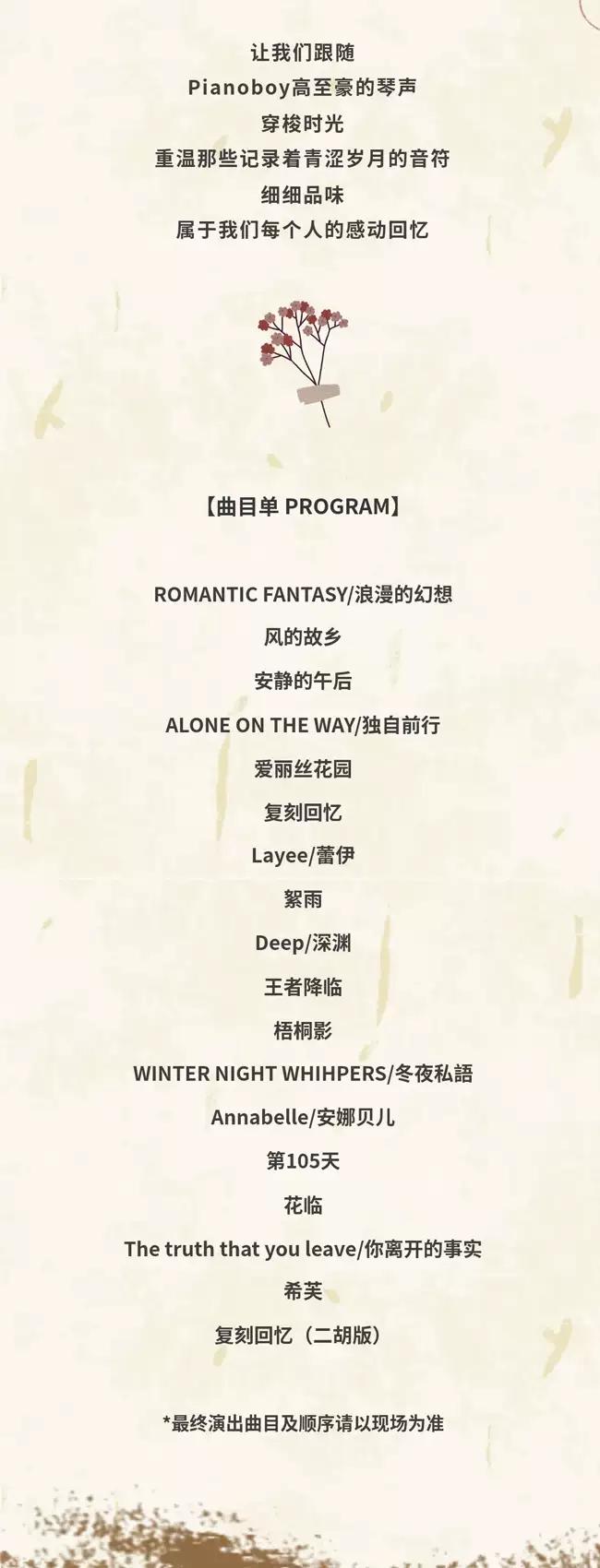 | 禁止携带物品 | 食品、饮料、相机、充电宝、打火机等 | 发票说明 | 如需开具发票,请在演出结束后一个月内联系客服并提供开票信息:票款发票由商家开具,平台服务费发票由票牛开具。 |