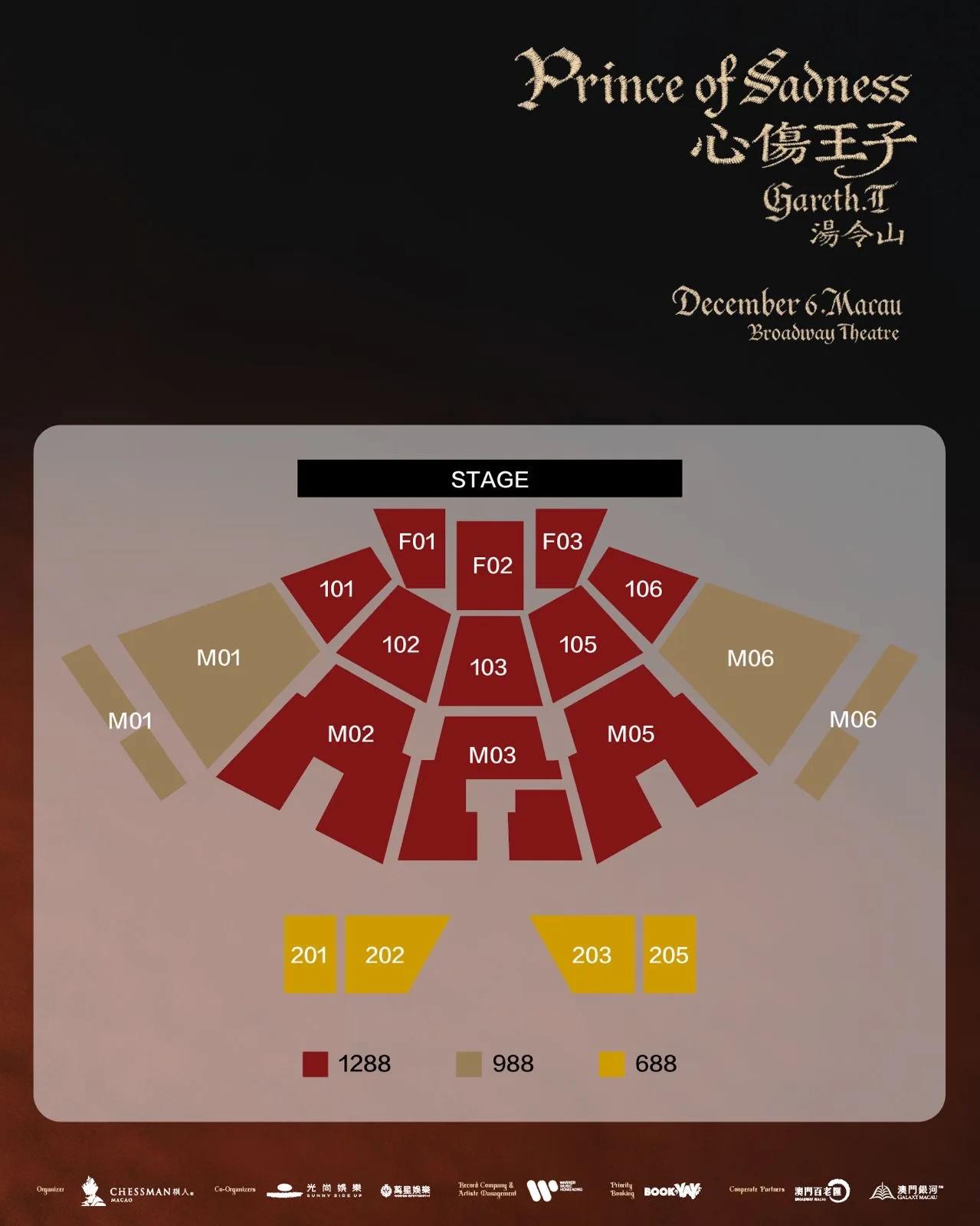 澳门币票价MOP: 1288 / 988 / 688