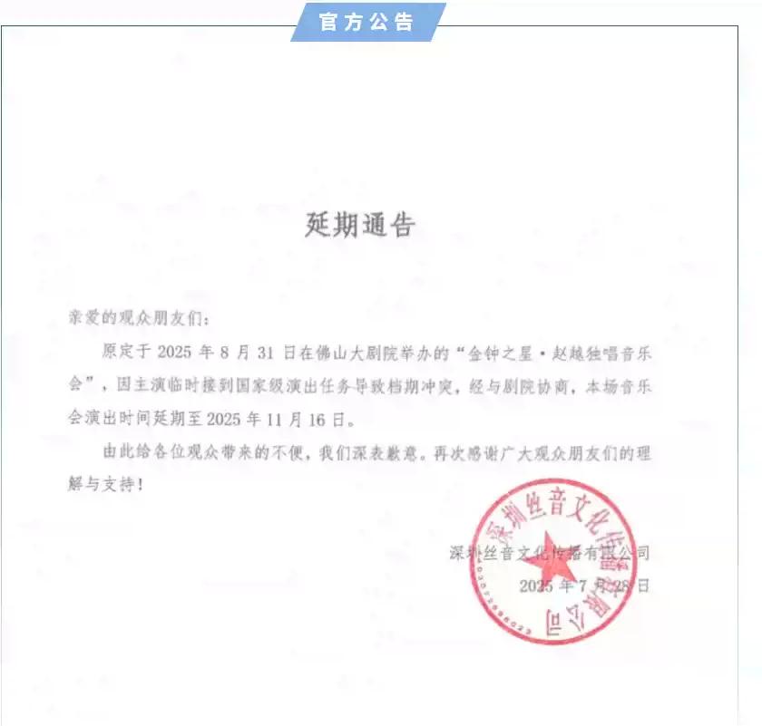 演出名称:【2025第五届佛山城市艺术季】“金钟之星”赵越独唱音乐会
