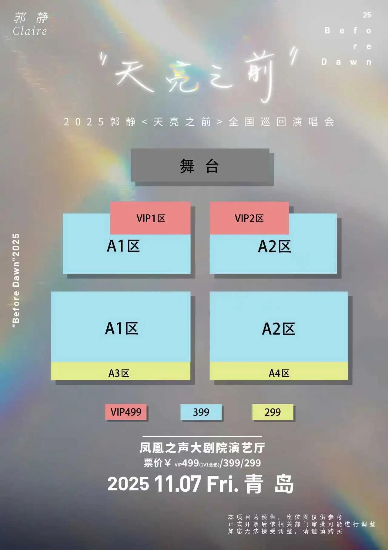 | 限购说明 | 每单限购6张 | 重复购票说明 | 同一位“实名观演人”请勿在多个售票平台重复购票,一位“实名观演人”的身份信息对应同场次的一张门票。 若同一位“实名观演人”被发现存在多个购票平台购买同场次行为,由该行为产生的无效重复订单、退票手续费、过期不可退票、无法入场等所有损失,均由购票人自行承担。 |